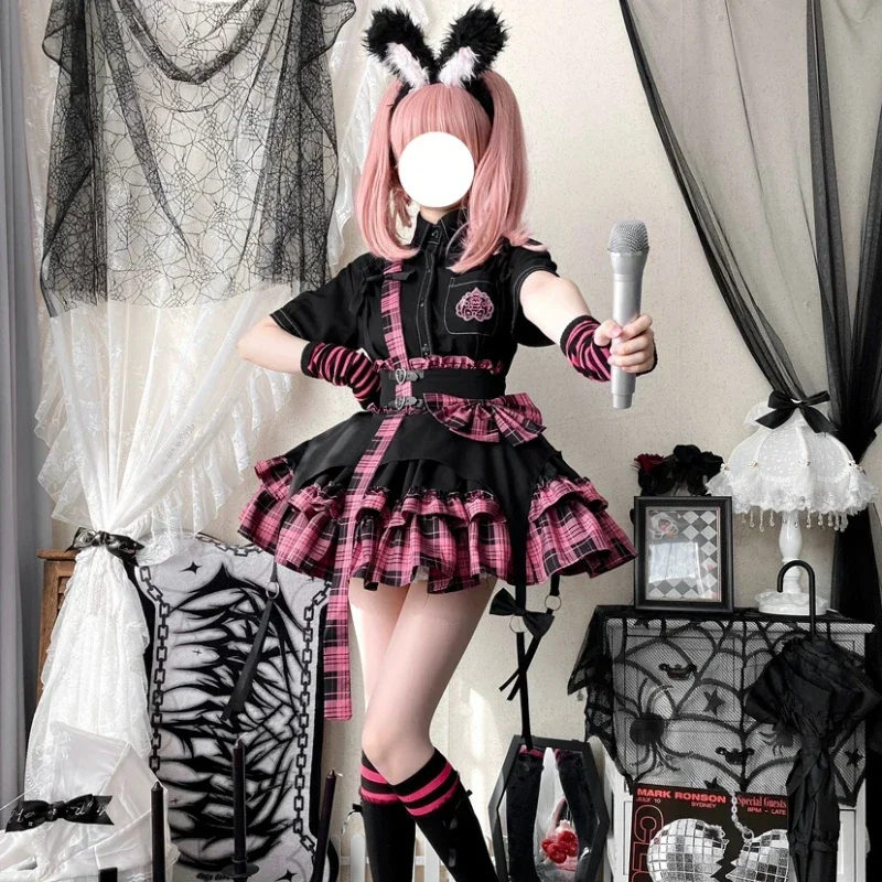Cute Girl Y2k Cosplay Costume Party Skirt Ball Gown Lolita Plaid Bow Suspender Skirt Women Love Button A-Line Mini Skirts