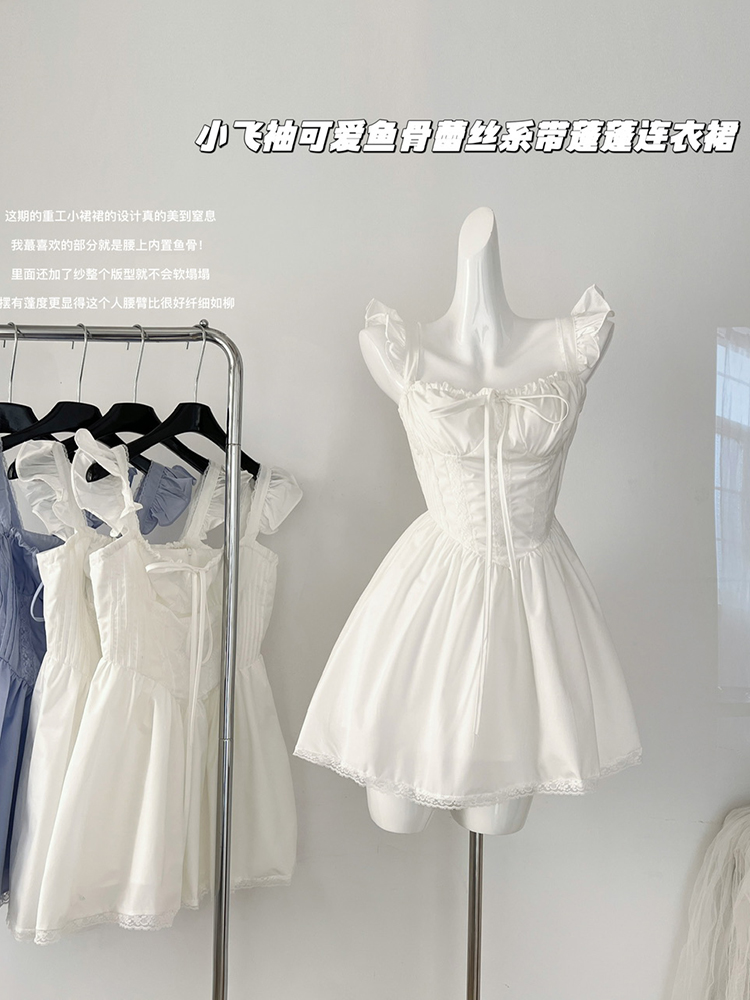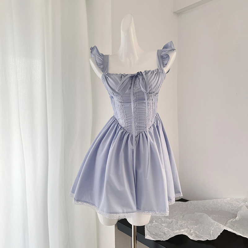 BXOXO - summer inspo 2025 Summer Fairy Backless Lace Patchwork Suspender Dresses Women's Slim Fit High Waist Elegant Mini Dress Fashion Chic