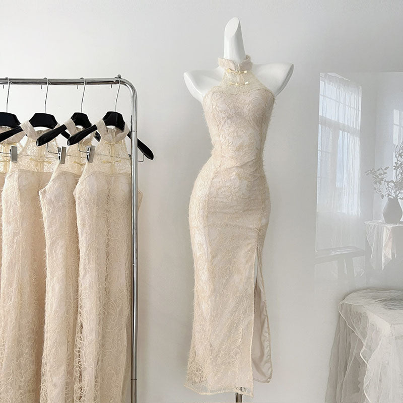BXOXO - summer inspo 2025 Summer New Chinese Style Qipao Women Sexy Elegant Halter Sleeveless Dress Fashion Slim Fit Hip Wrap Dress