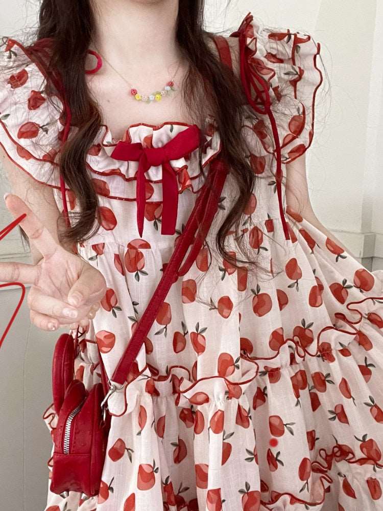 This Apple of My Eye Dress is the sweetest little thing in town! Slip into this cute-as-can-be statement piece and you'll be the apple 🍎 of everybody's eye. Show off the layered ruffles, unique applique, and pretty bow and turn heads—all with a dash of kawaii! 🤩