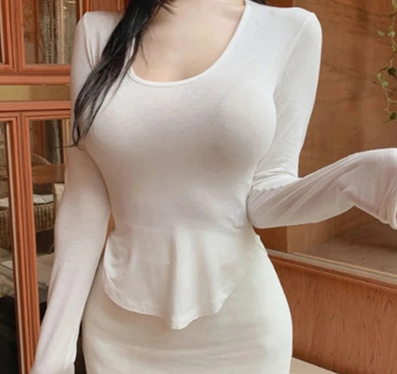 BXOXO Autumn Long Sleeve Tshirt Women Fashion Slim White Woman Tshirts Tops High Elasticity Thin Skinny Tee Shirt Blusas