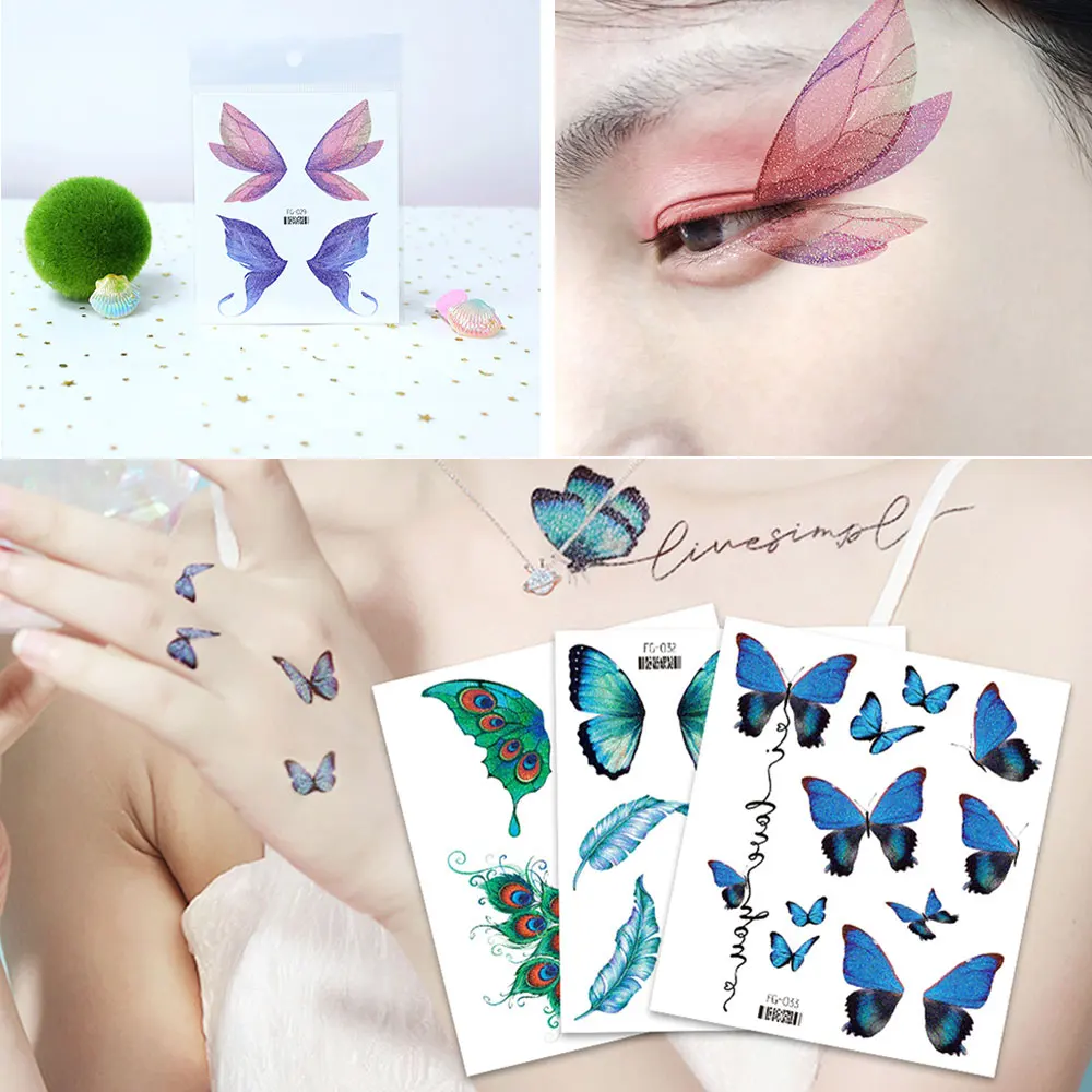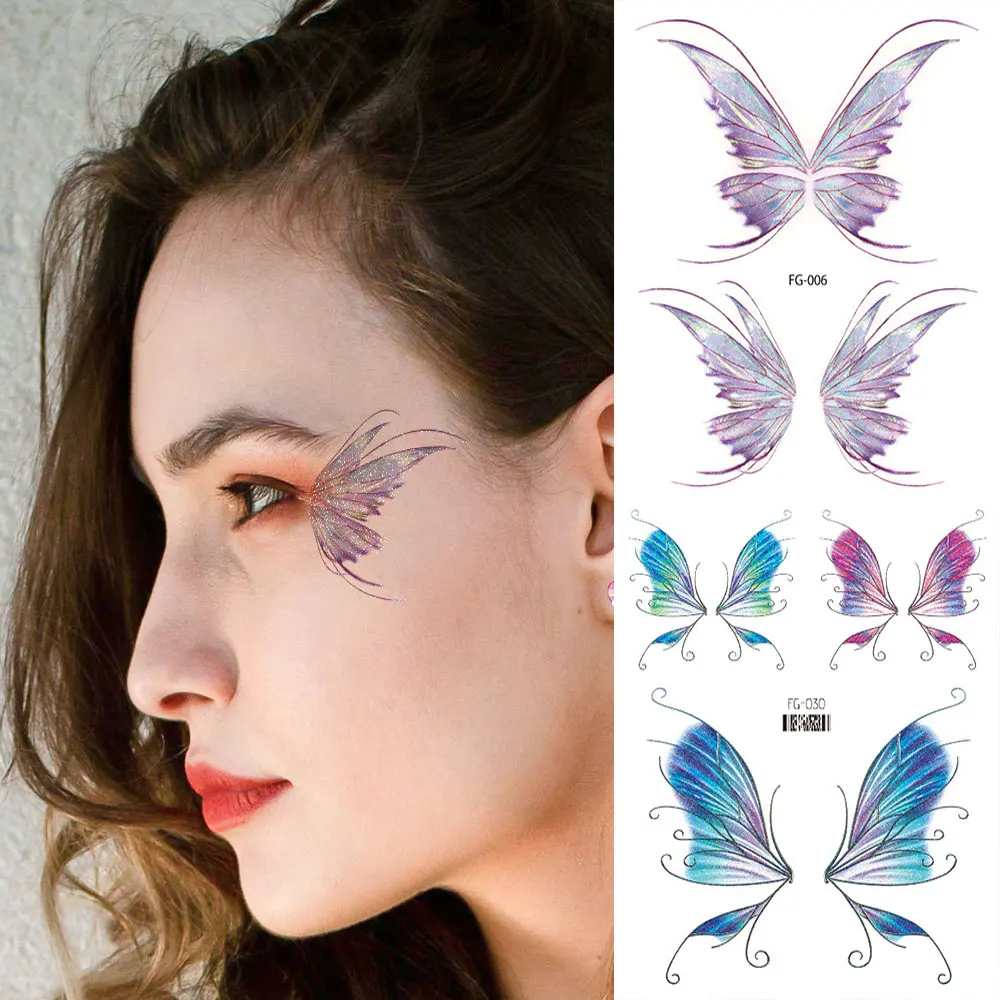 1 Sheet Flash Butterfly Temporary Tattoo Sticker for Eye Face Makeup Fairy Body Art Waterproof False Tattoo for Women