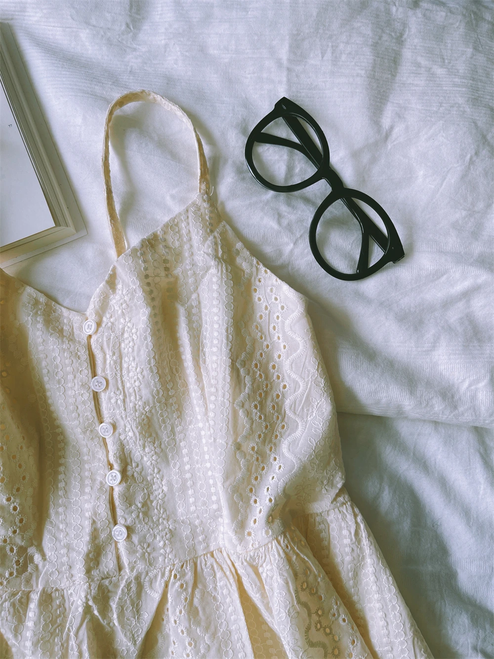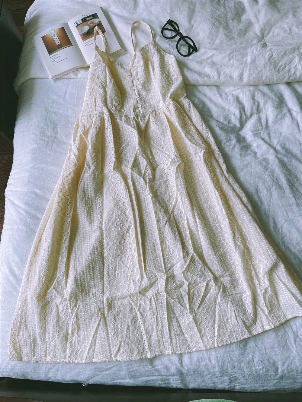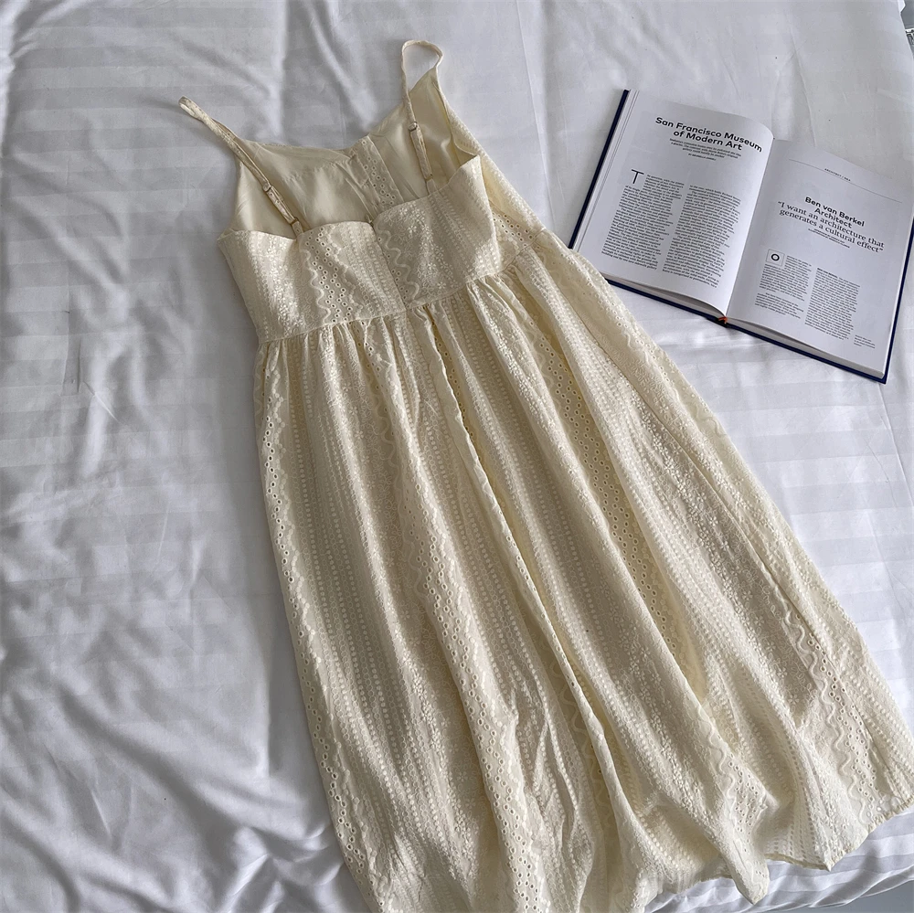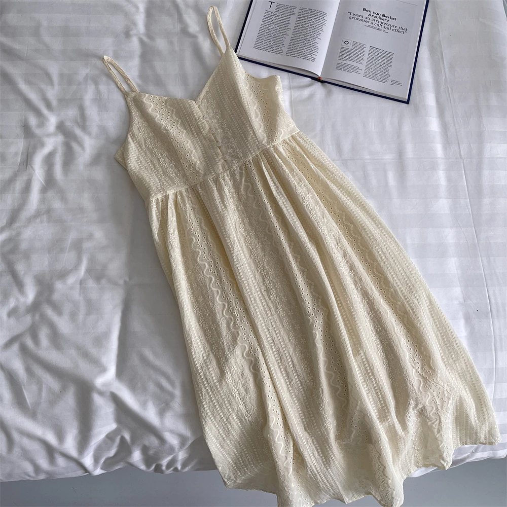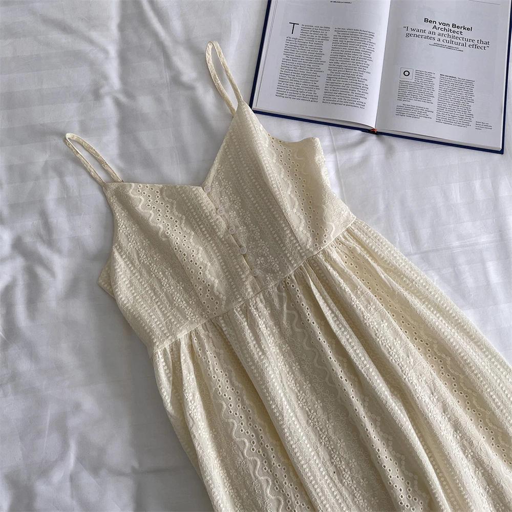 Bxoxo A-Line Lace Dr Hollow out Button Detail Inner Strapl Long Skirt High Waist Commute Sle Pure Color Gown