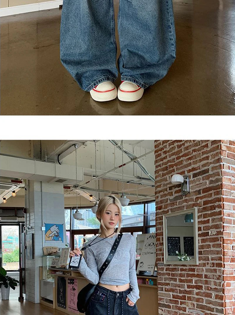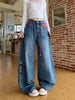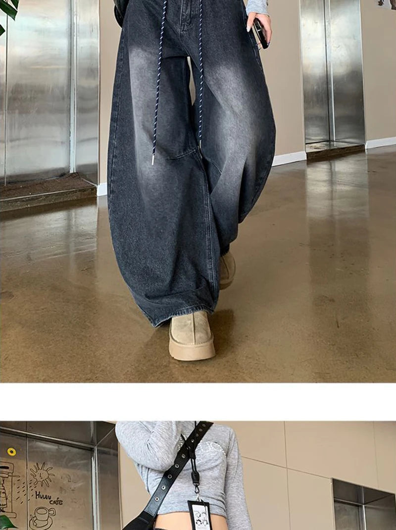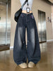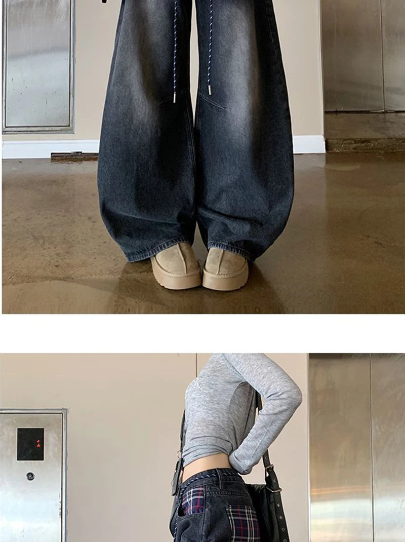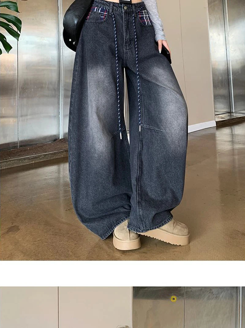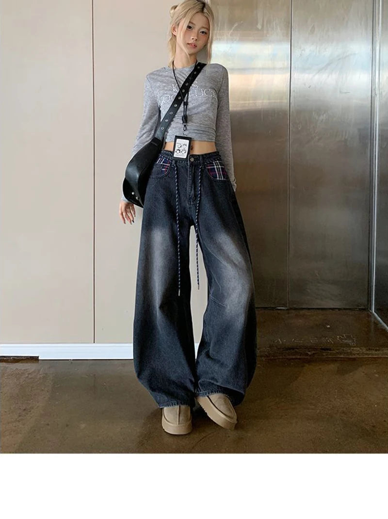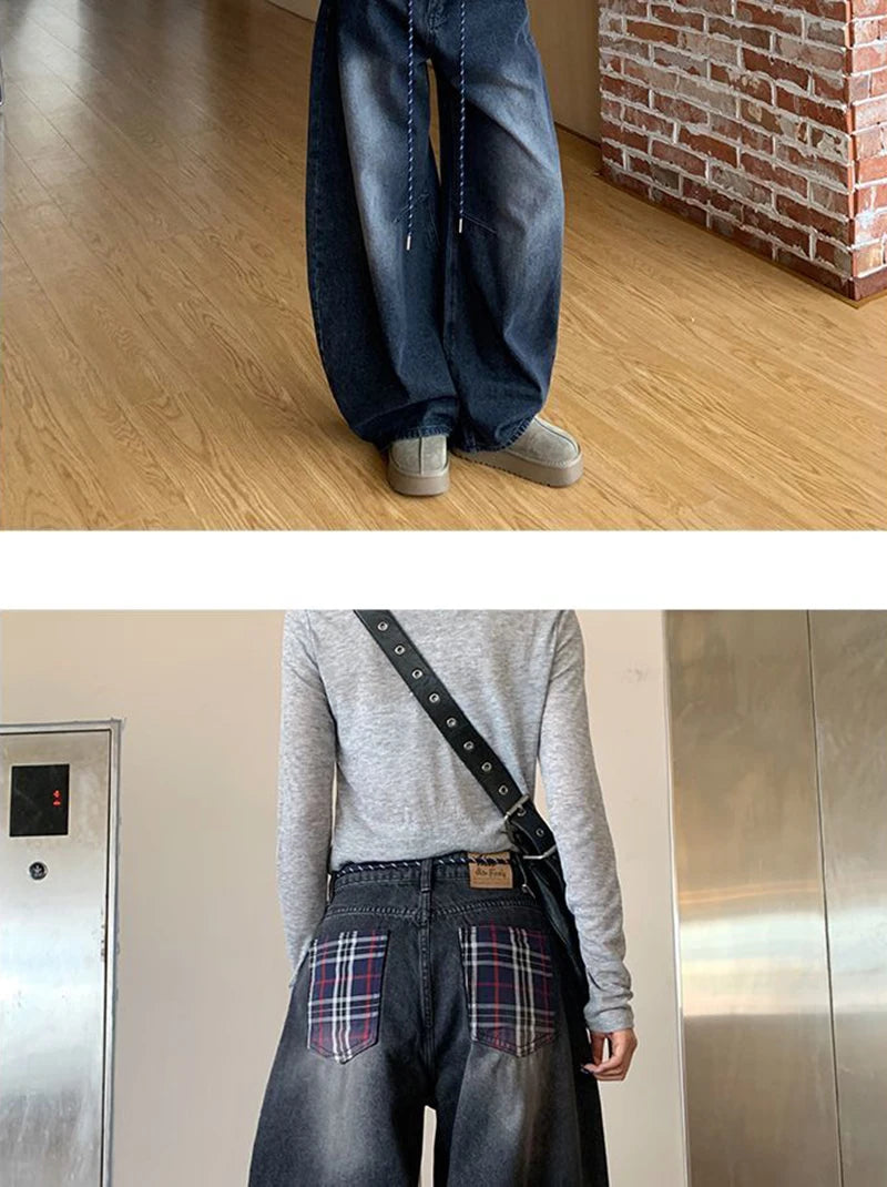 Bxoxo American Plaid Patchwork Women Wide Leg Jeans Autumn High Waist Streetwear Loose Scimitar Trousers Harajuku All Match Denim Pant