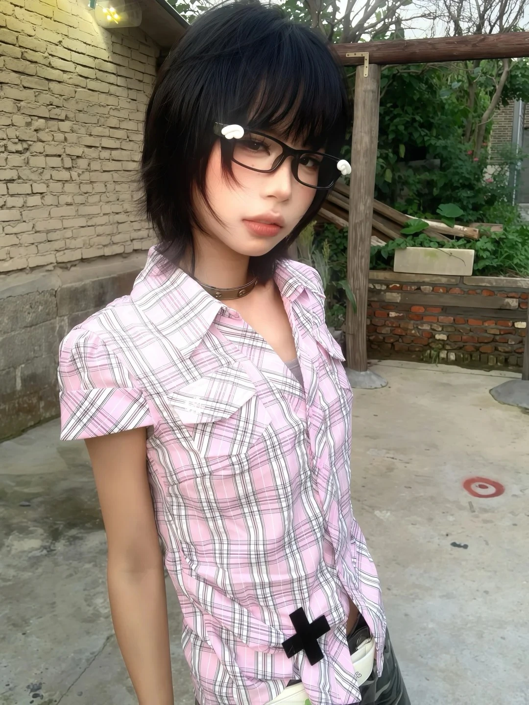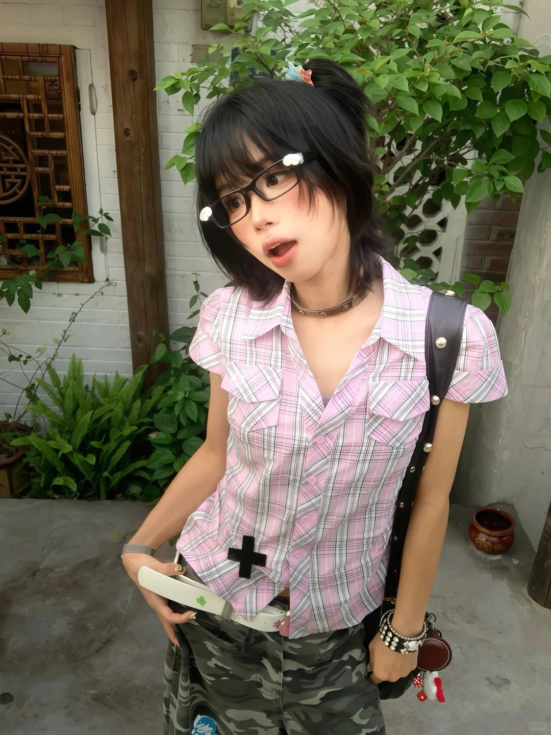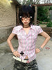 Bxoxo American Retro Plaid Shirt Women Short Sleeve Casual Shirt And Blouse Y2k Vintage Frill Blouse 2000s Japanese Shirts