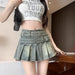 BXOXO American Vintage Streetwear Sexy Denim Skirts Women's Belt Buckle High Waist Pleated Y2k Skirts Hottie All-match Short Skirt New