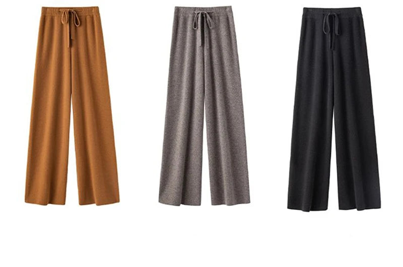 Bxoxo Autumn Casual Wide Leg Pants for Women High Waist Drawstring Soft Warm All Match Pants Korean Solid Simple Straight Trousers New