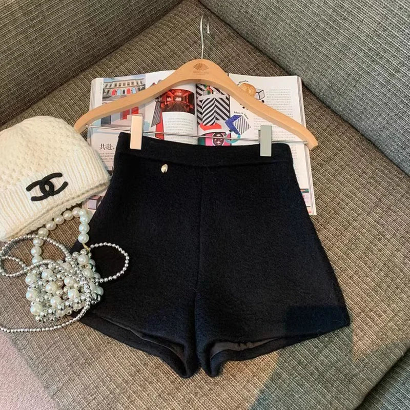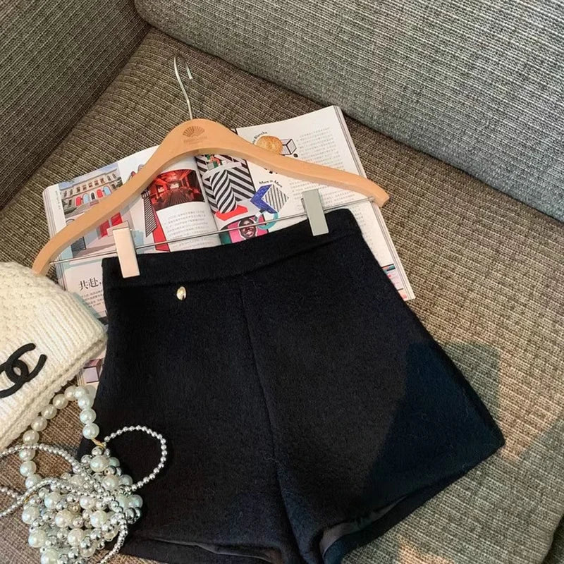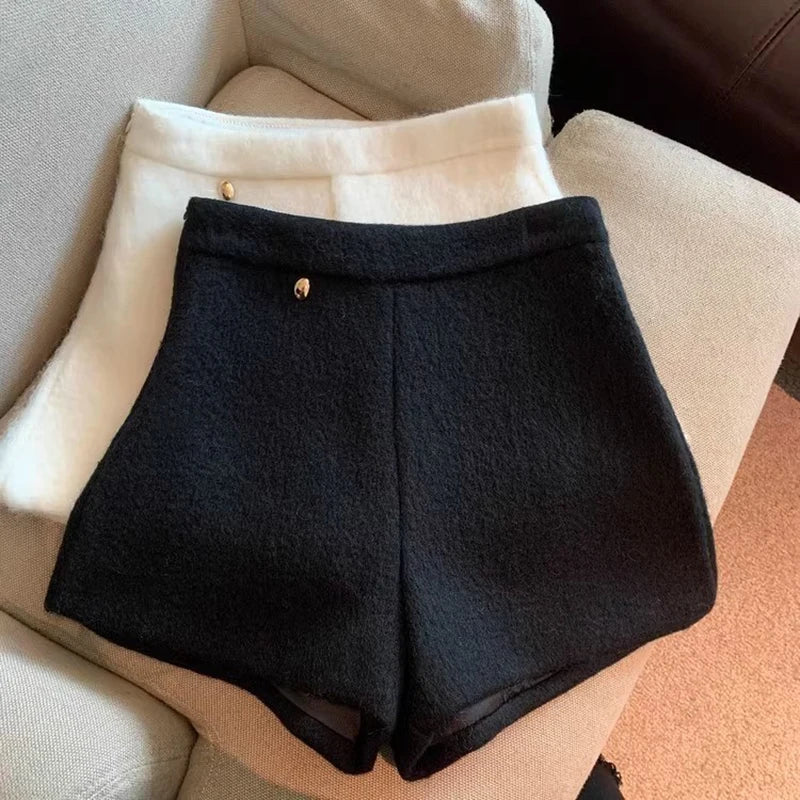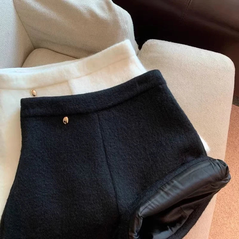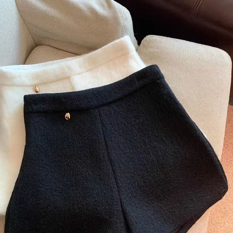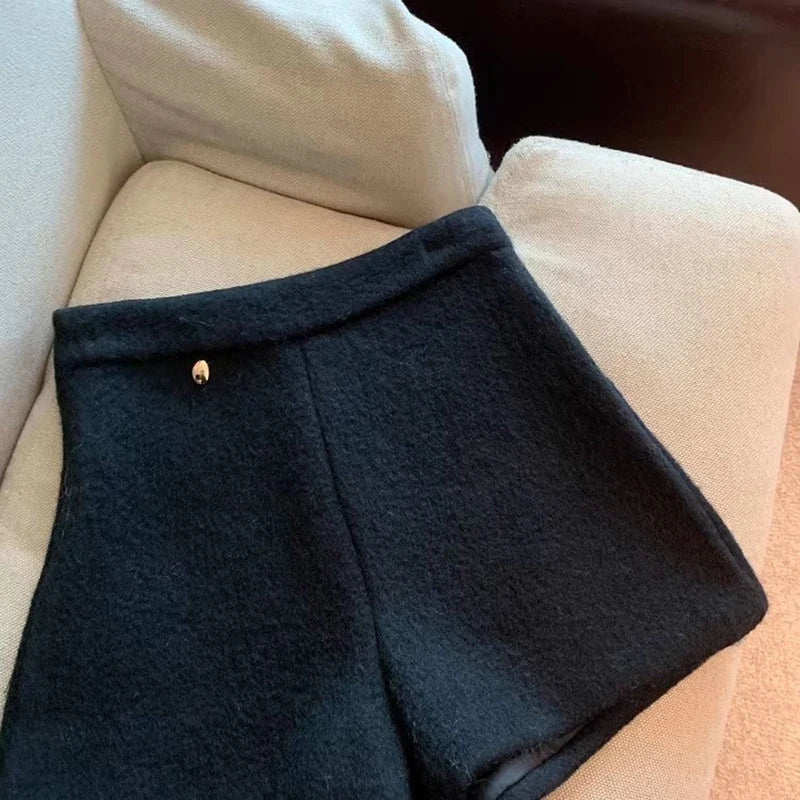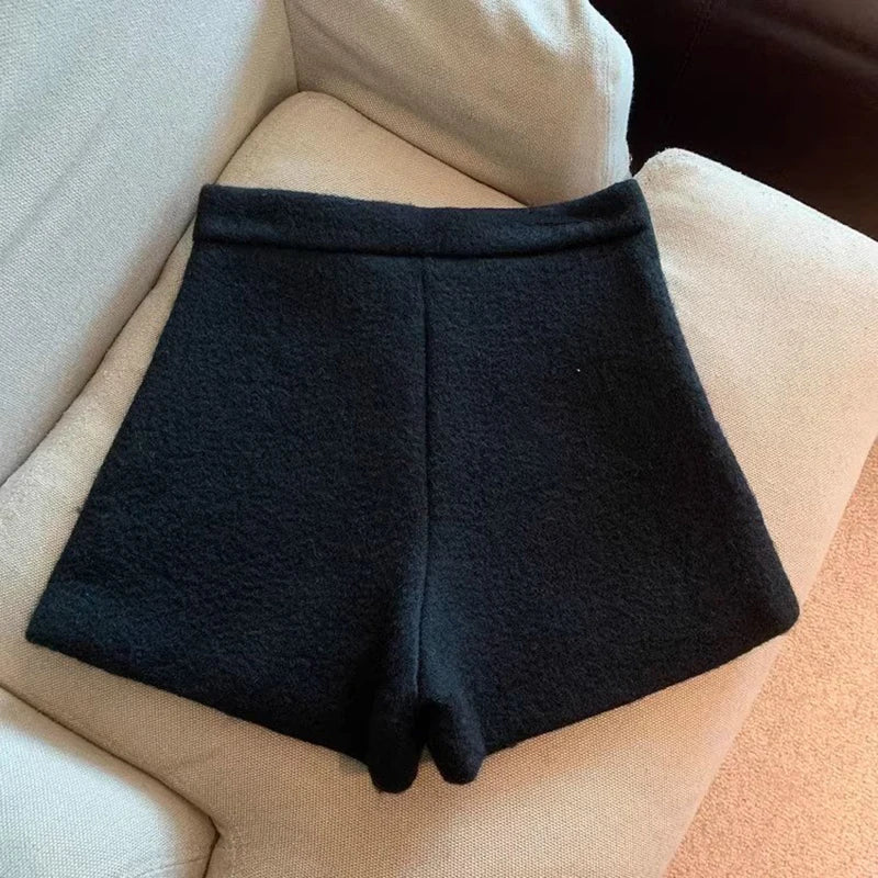 Bxoxo Autumn Faux Wool Shorts Women Y2K High Waist Office Lady Casual Mini Shorts Female Fashion All Match Blend Wide Leg Pants New