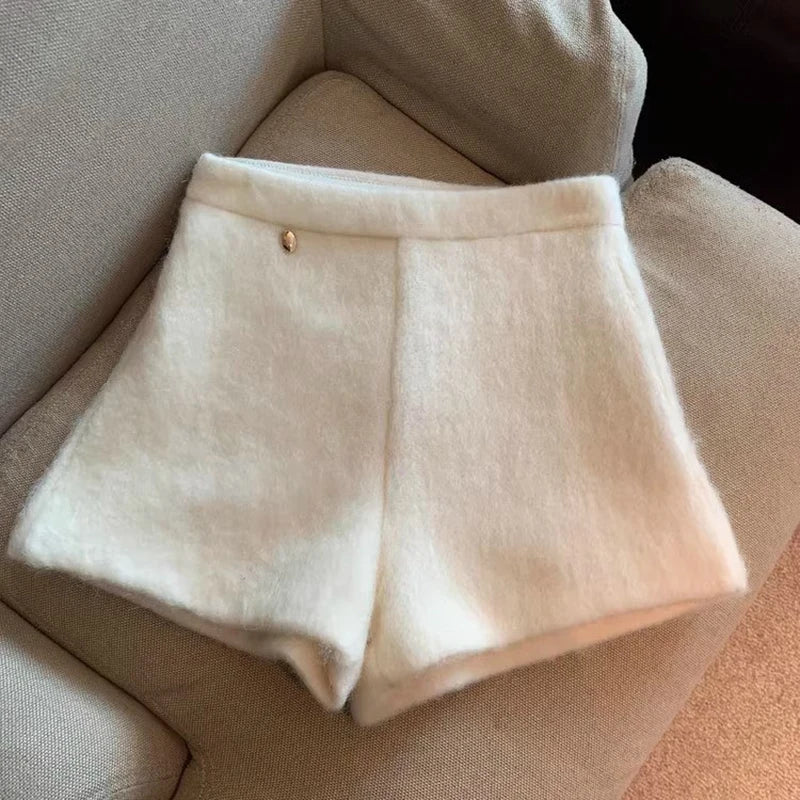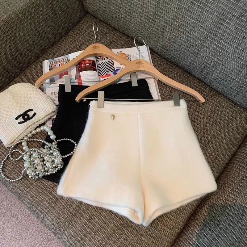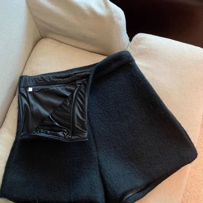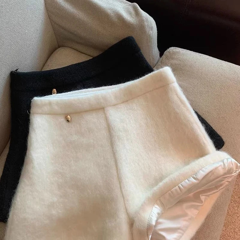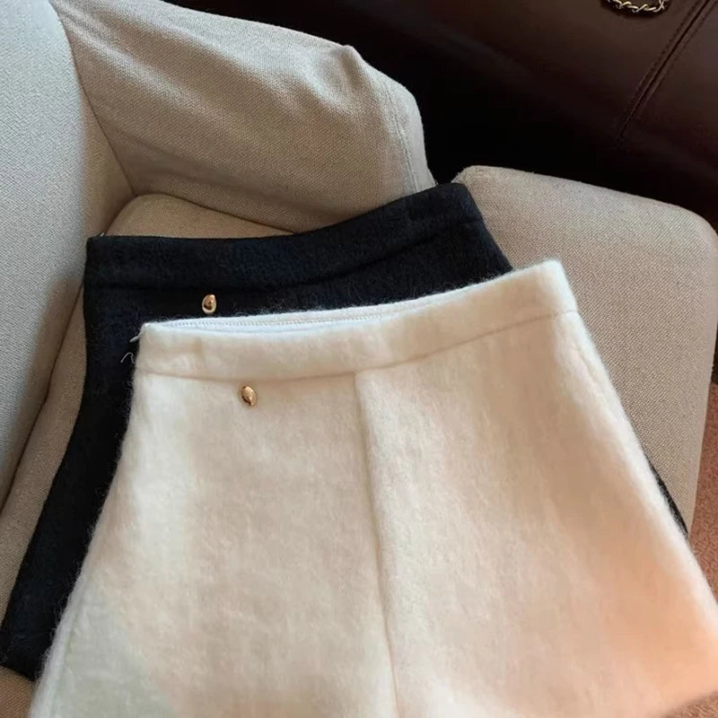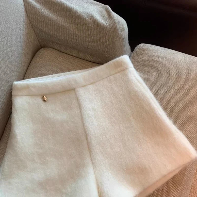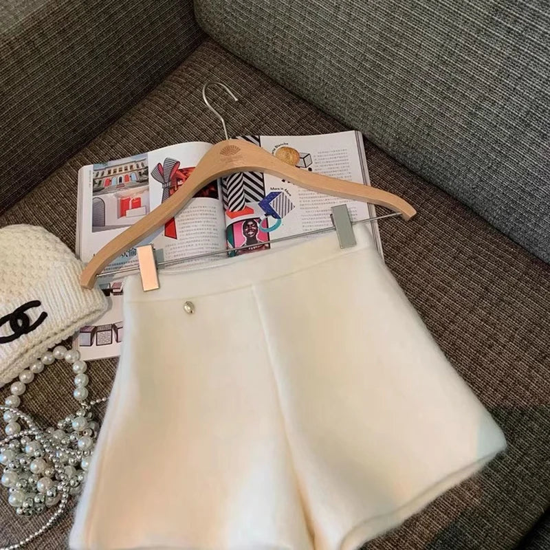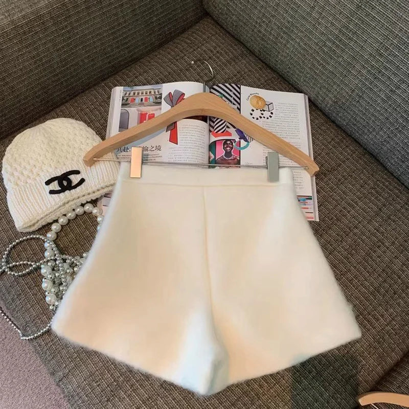 Bxoxo Autumn Faux Wool Shorts Women Y2K High Waist Office Lady Casual Mini Shorts Female Fashion All Match Blend Wide Leg Pants New