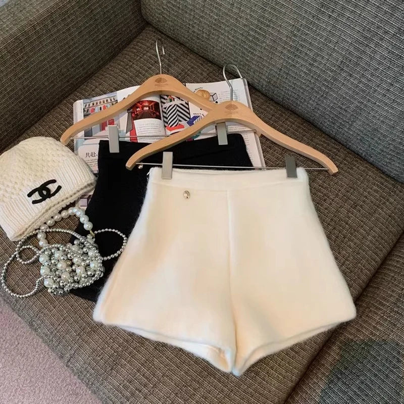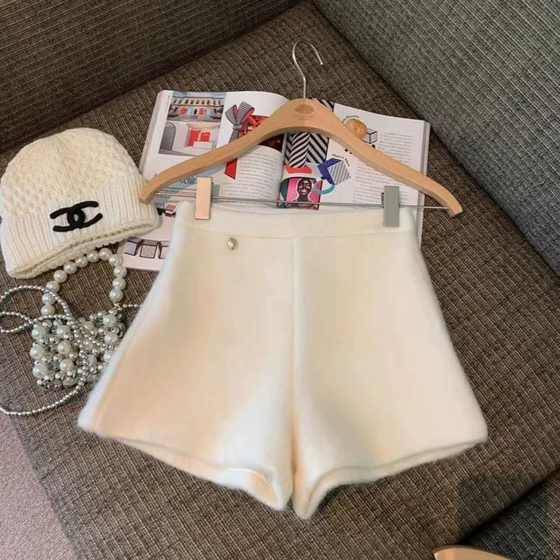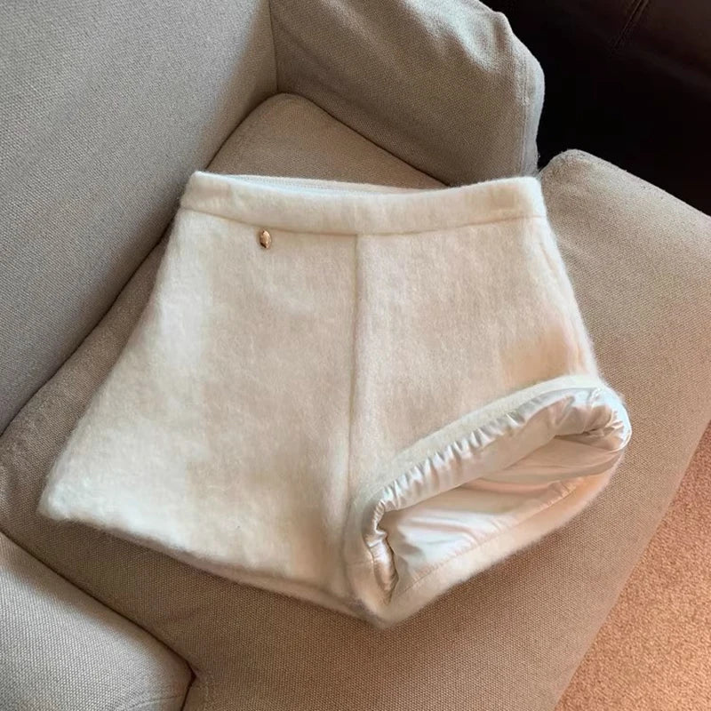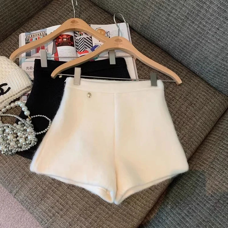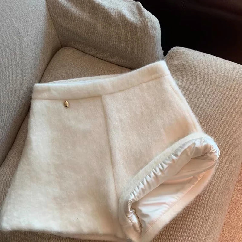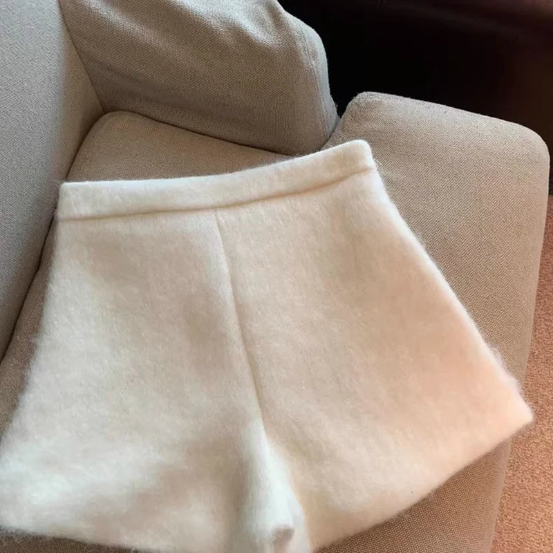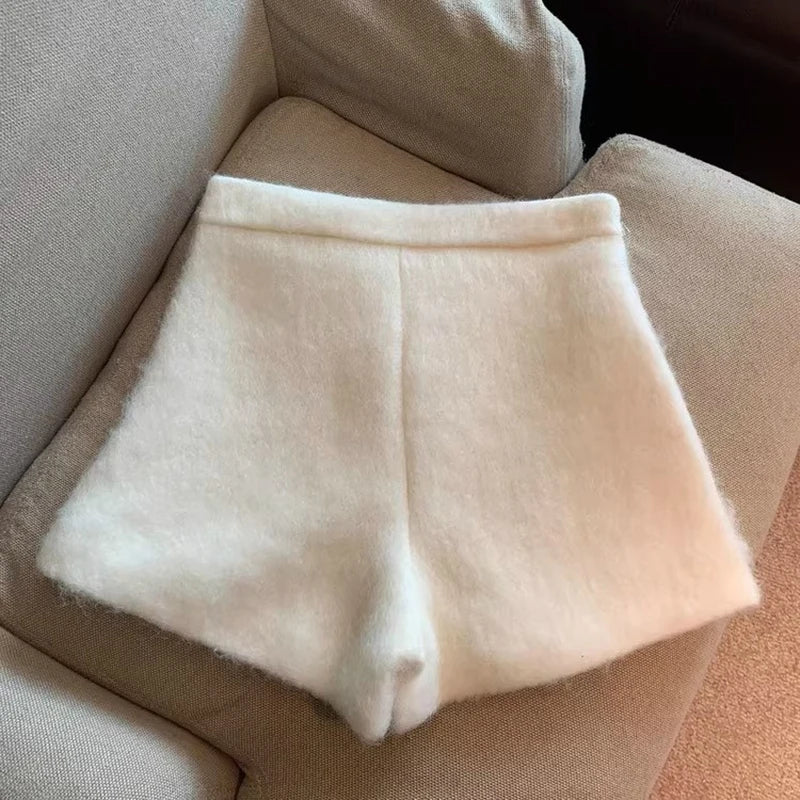 Bxoxo Autumn Faux Wool Shorts Women Y2K High Waist Office Lady Casual Mini Shorts Female Fashion All Match Blend Wide Leg Pants New