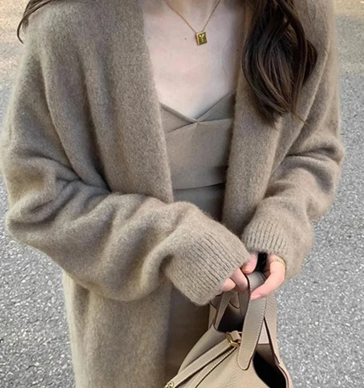 Bxoxo Autumn Knit Cardigan Sweaters Women Fashion Streetwear Loose Soft Casual Sweater Coat Female Elegant Office Lady Midi Cardigan