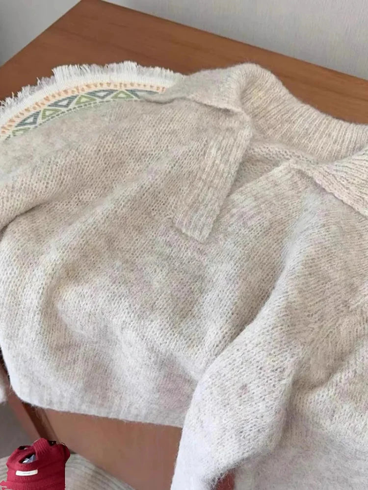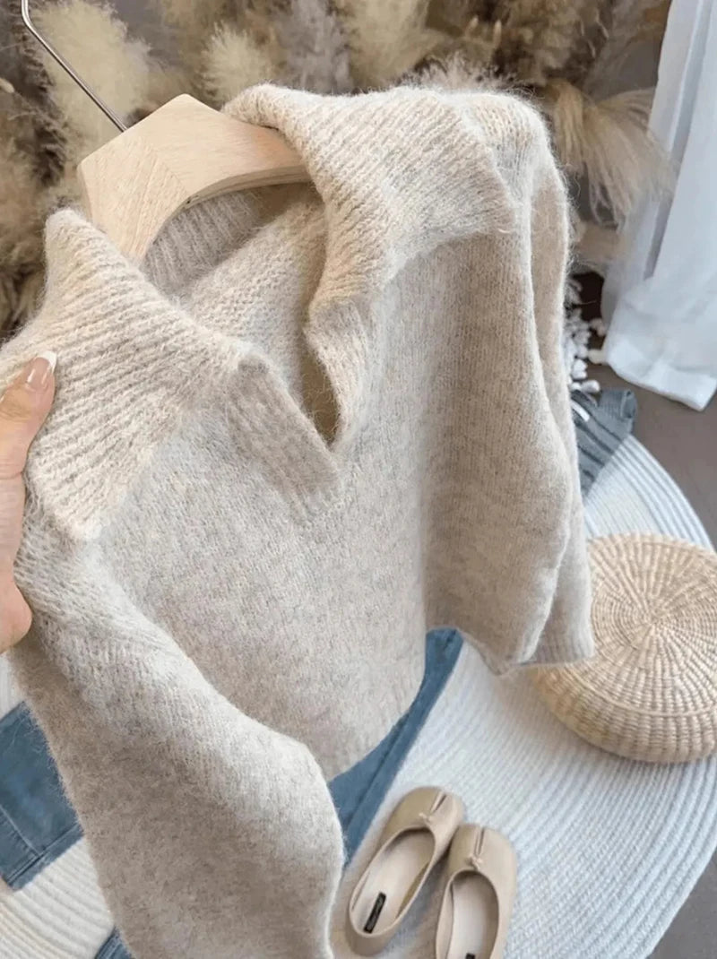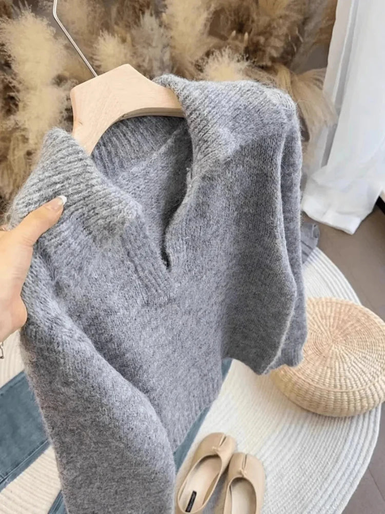 Bxoxo Autumn Knit Sweaters for Women Fashion Simple Basic Solid V Neck Pullovers Korean Chic Lapel All Match Jumpers Mujer New
