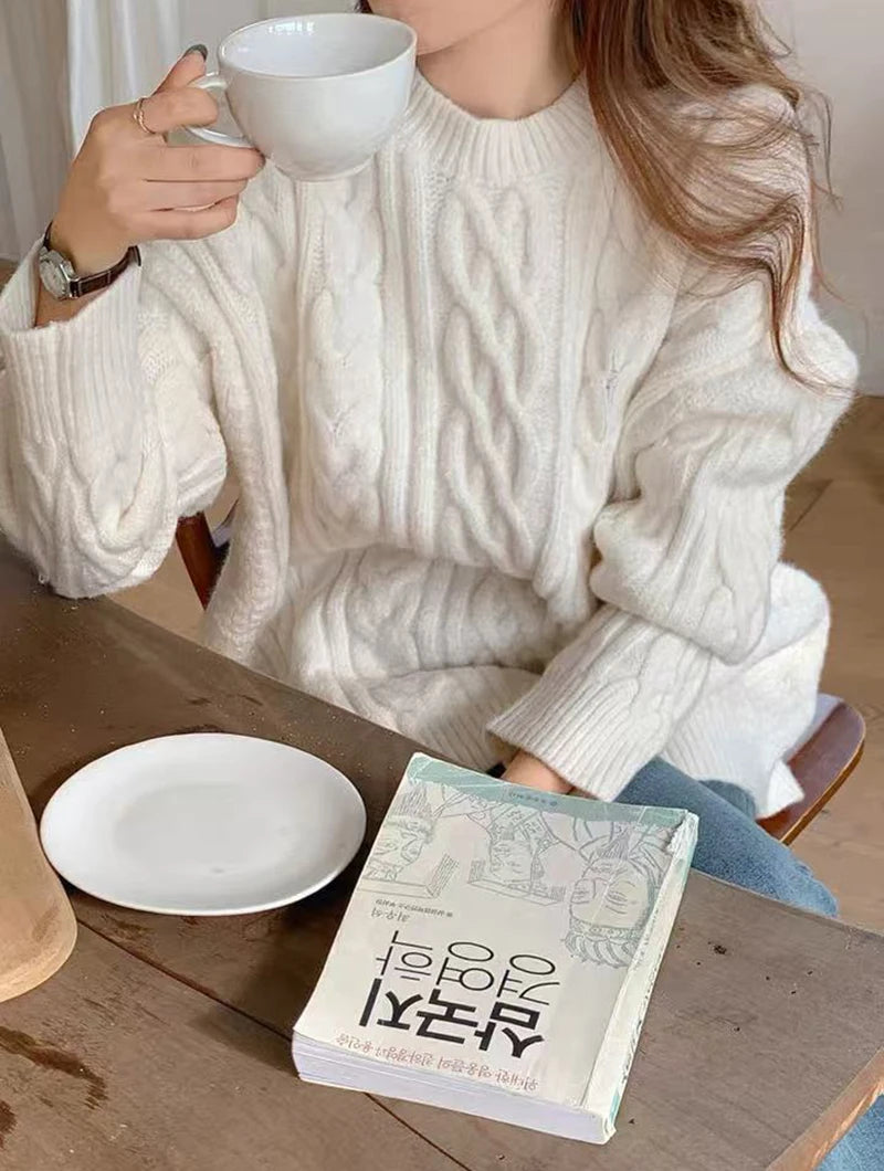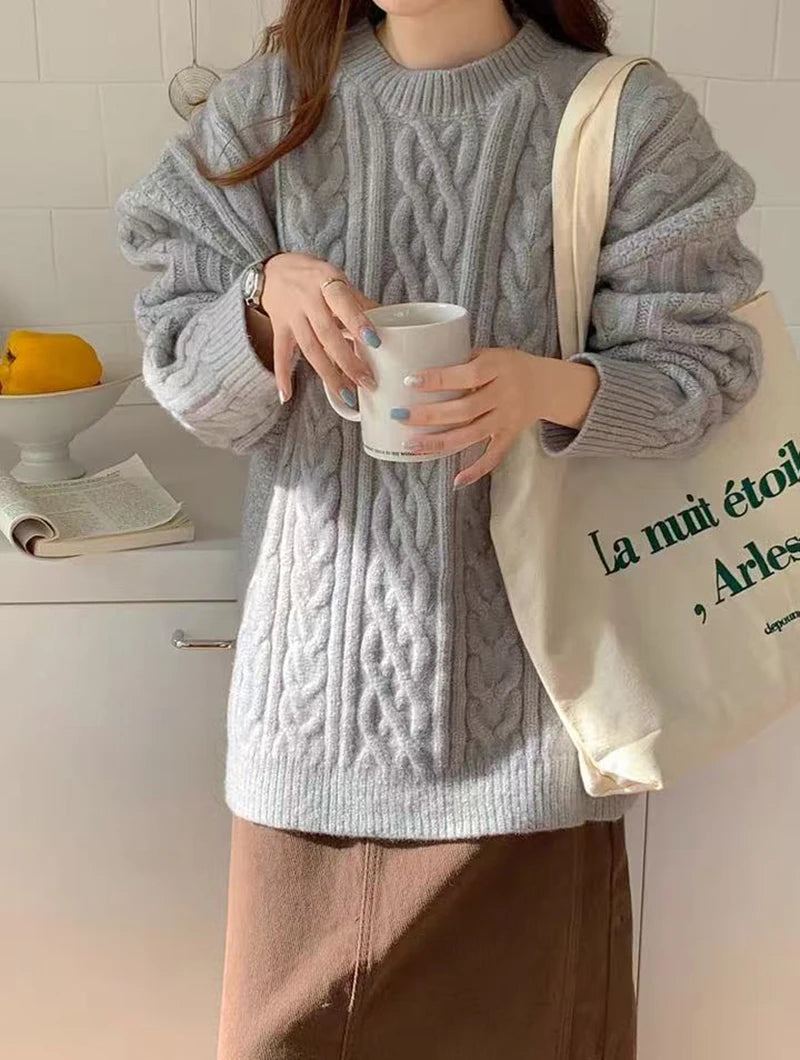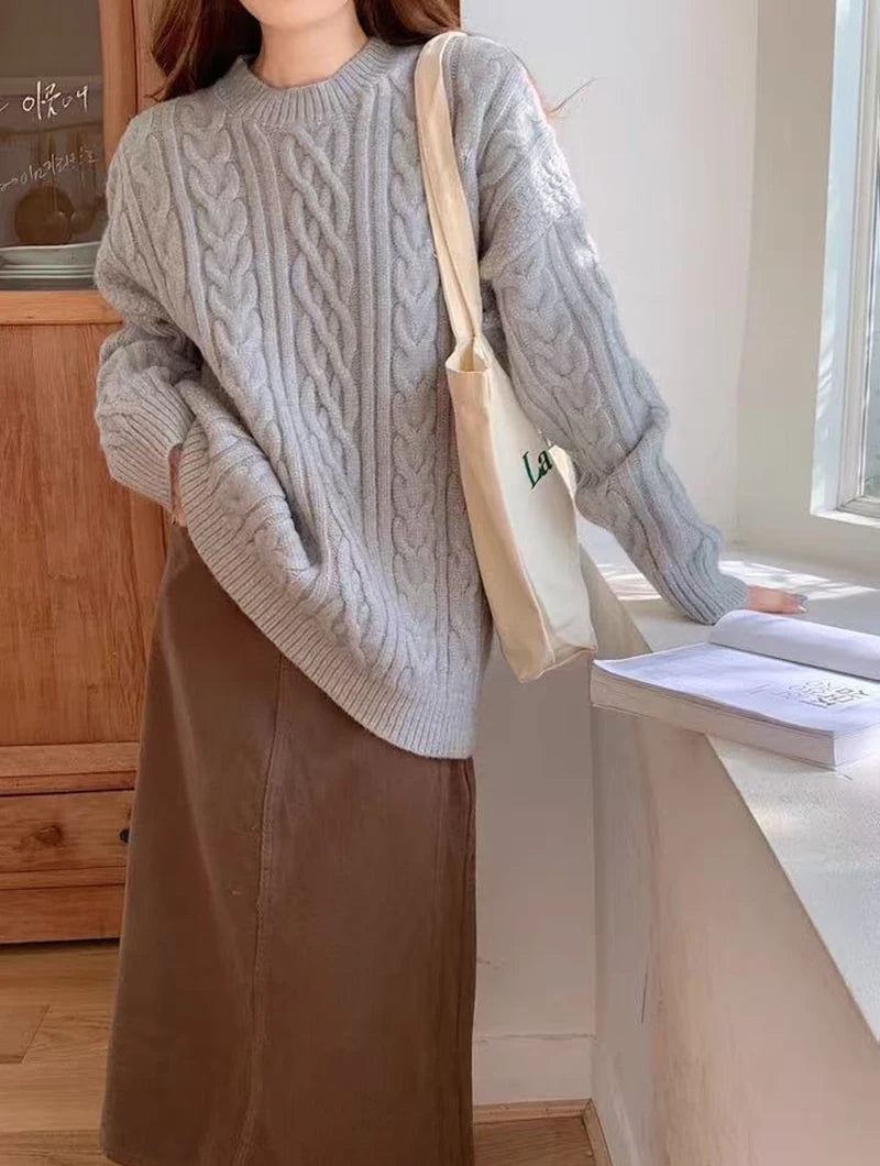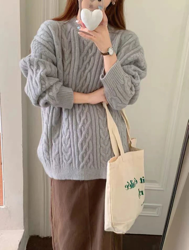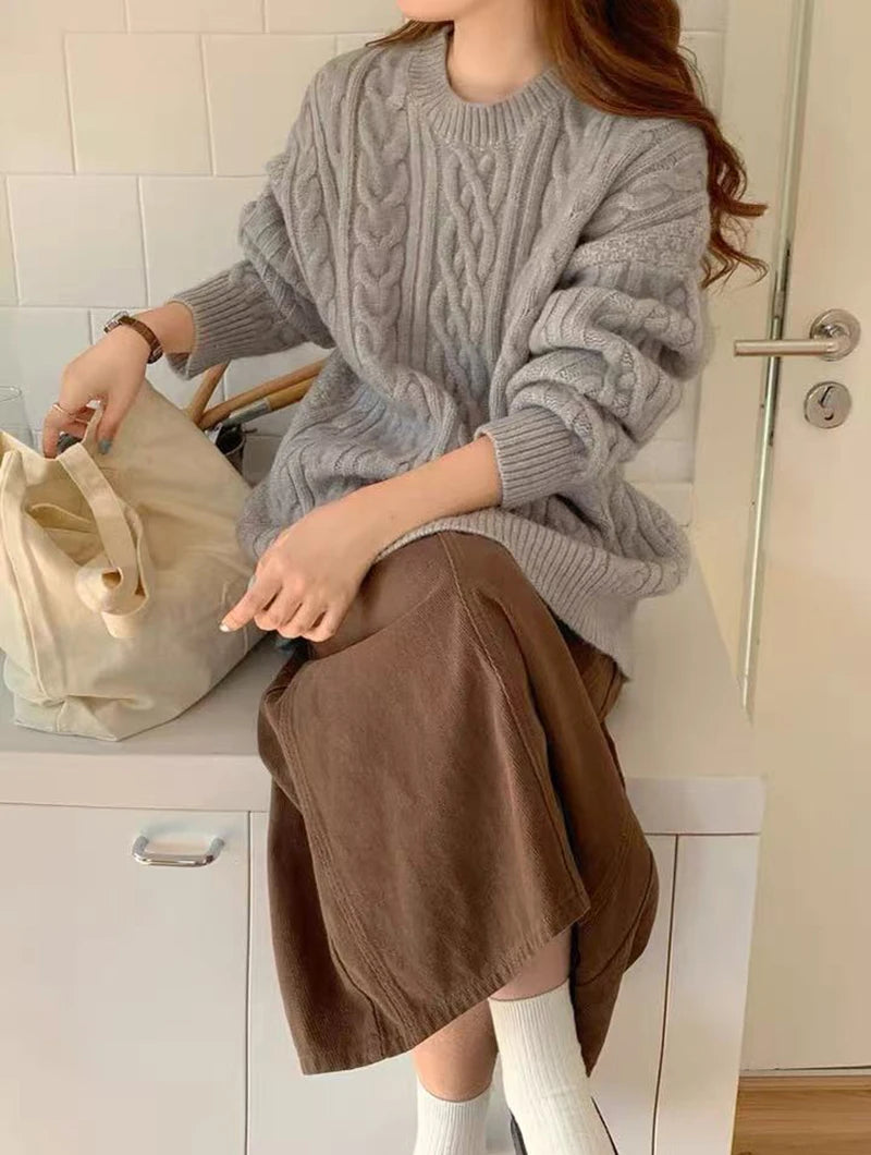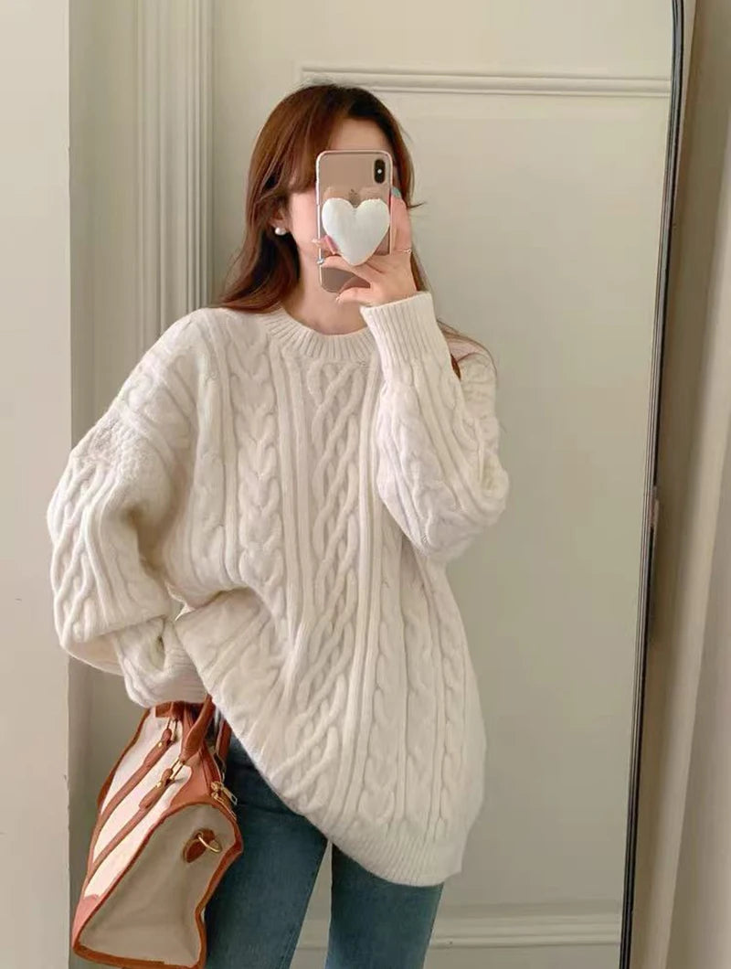 Bxoxo Autumn Knitted Sweaters for Women Korean Loose Lazy Style Casual Pullover Y2K Fashion All Match Thick Warm Soft O Neck Jumper