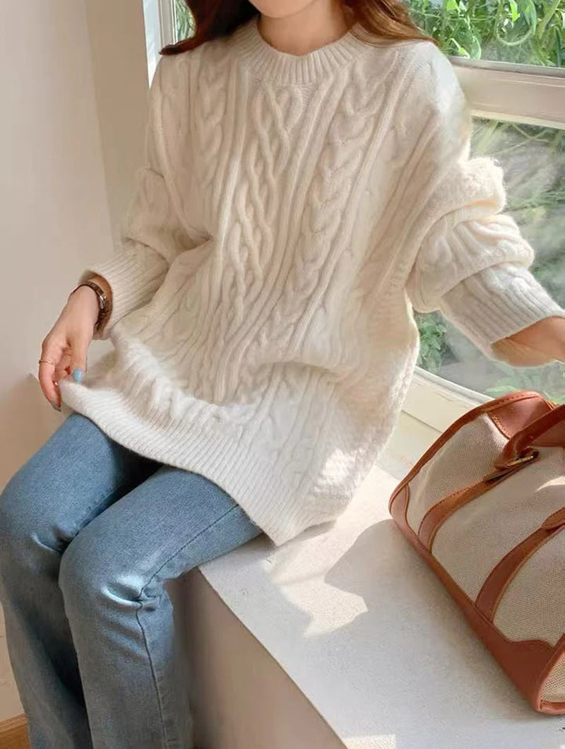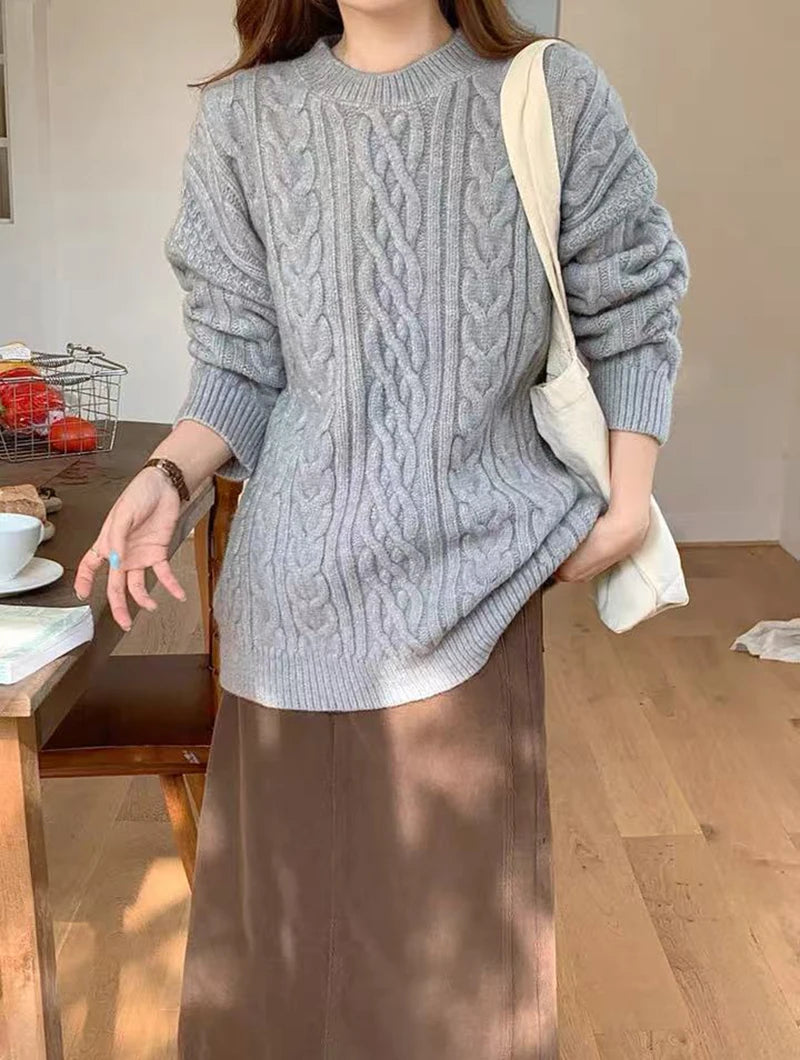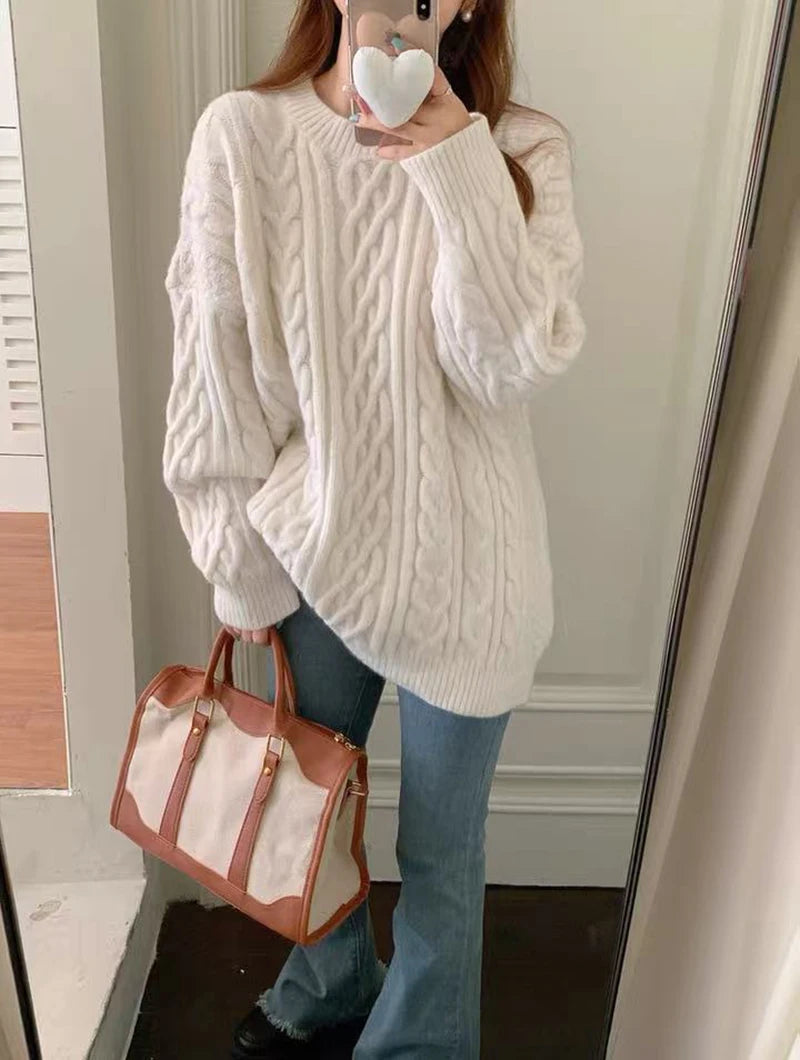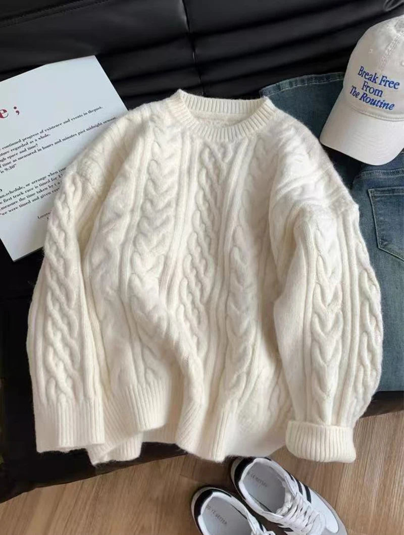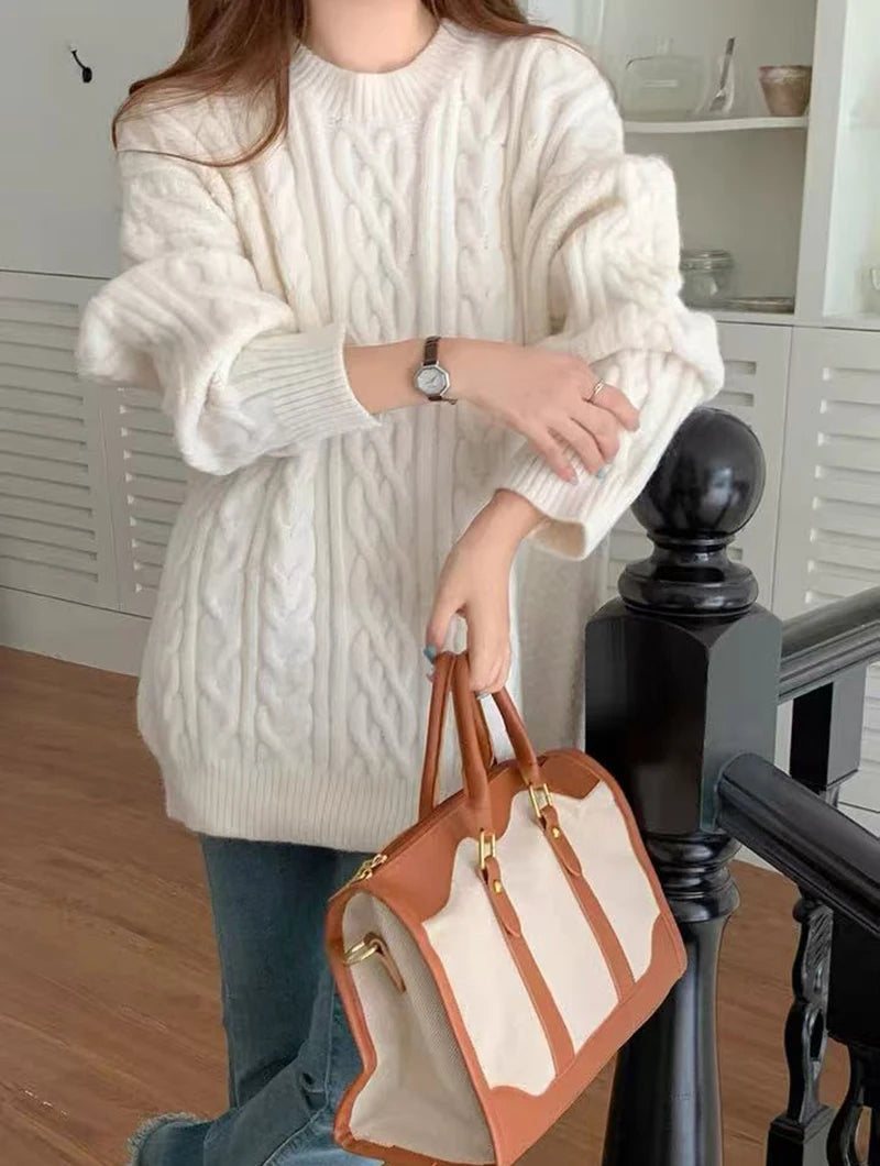 Bxoxo Autumn Knitted Sweaters for Women Korean Loose Lazy Style Casual Pullover Y2K Fashion All Match Thick Warm Soft O Neck Jumper