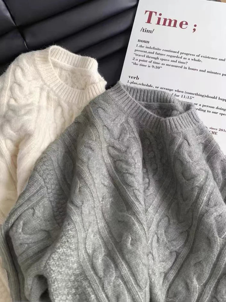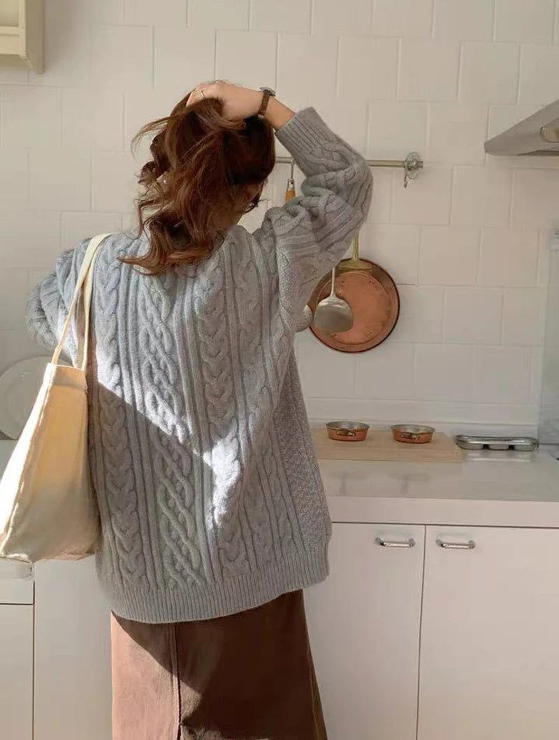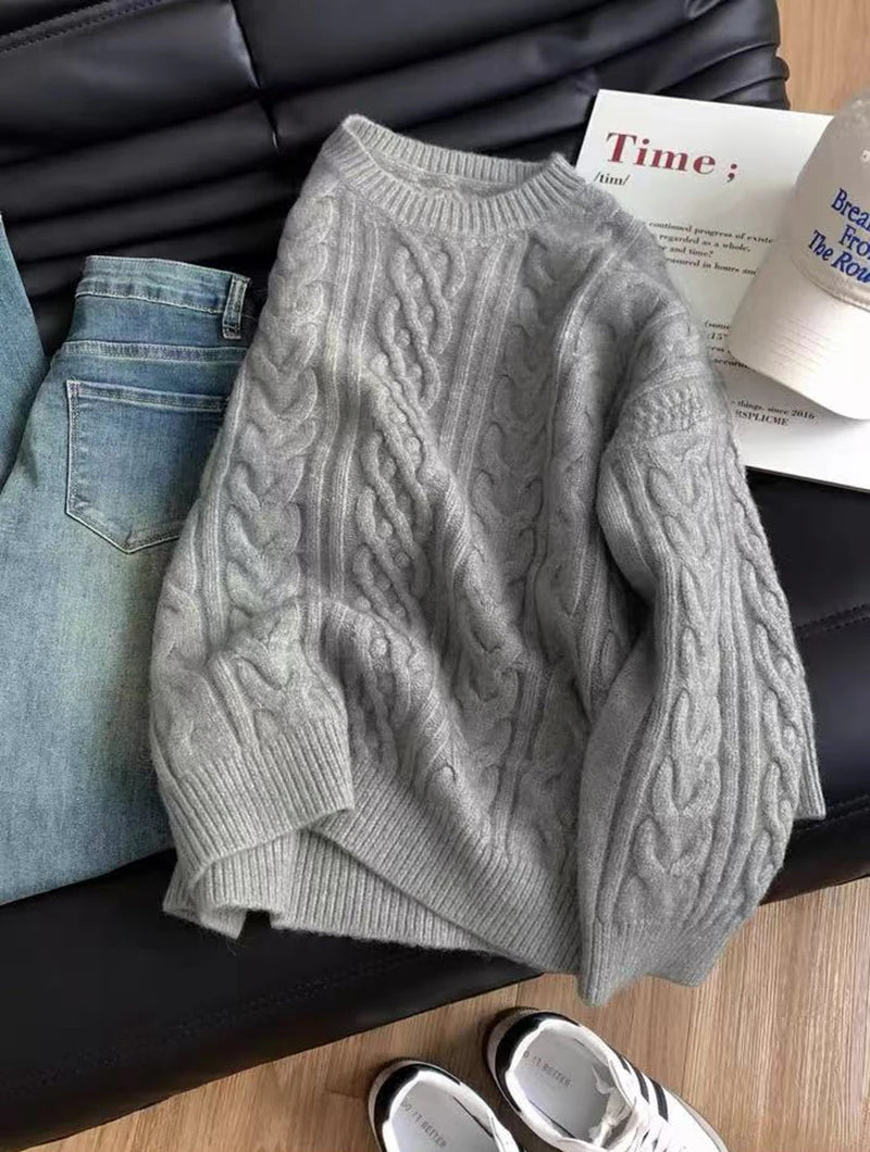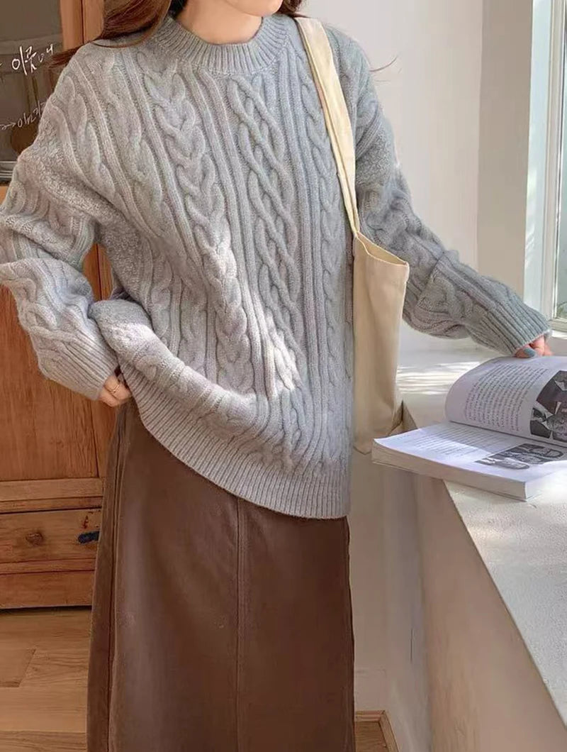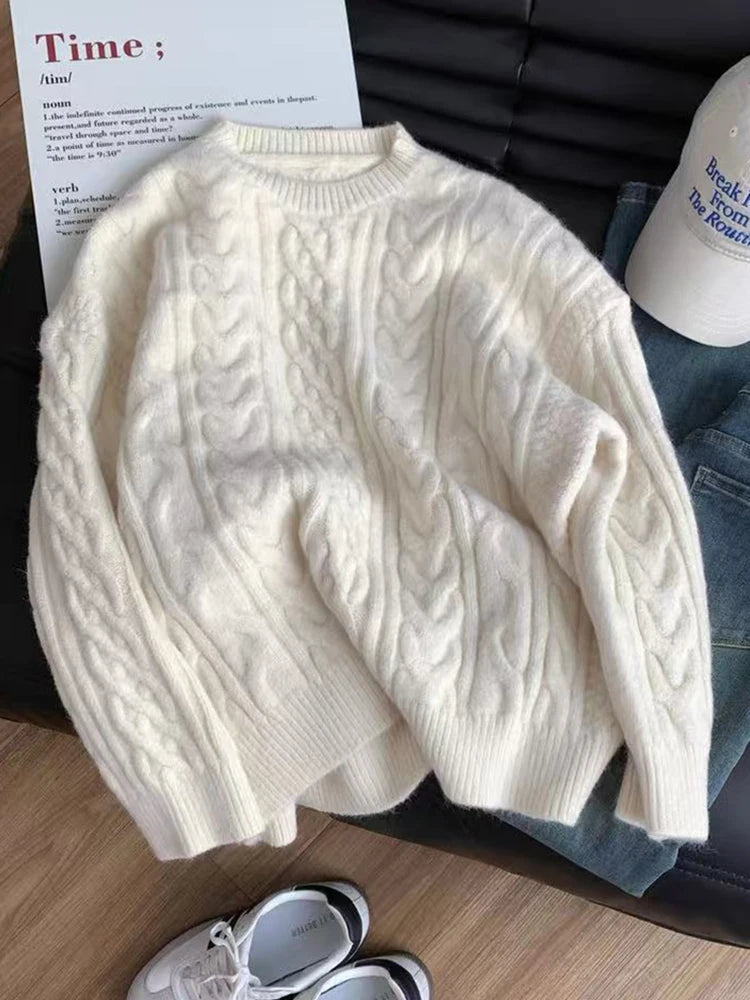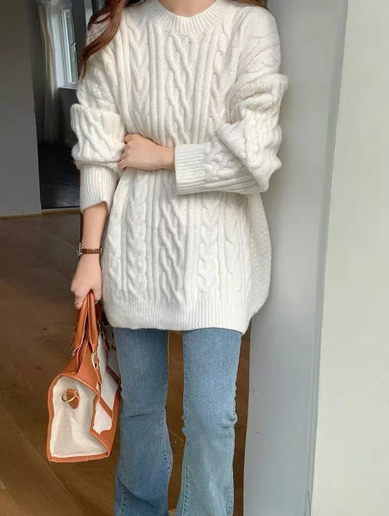 Bxoxo Autumn Knitted Sweaters for Women Korean Loose Lazy Style Casual Pullover Y2K Fashion All Match Thick Warm Soft O Neck Jumper
