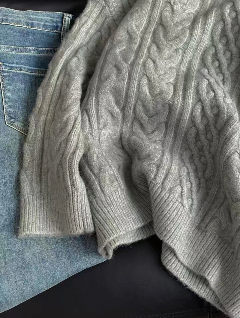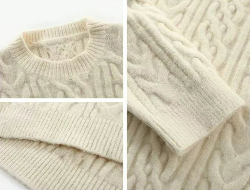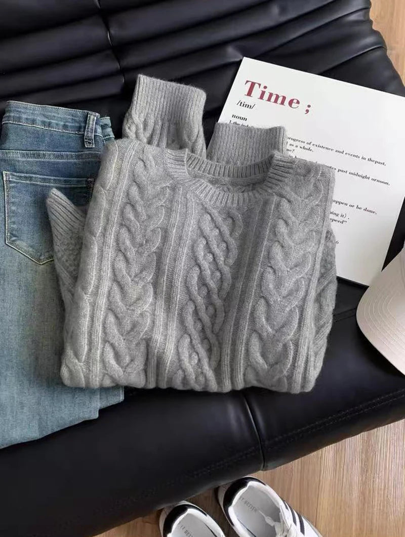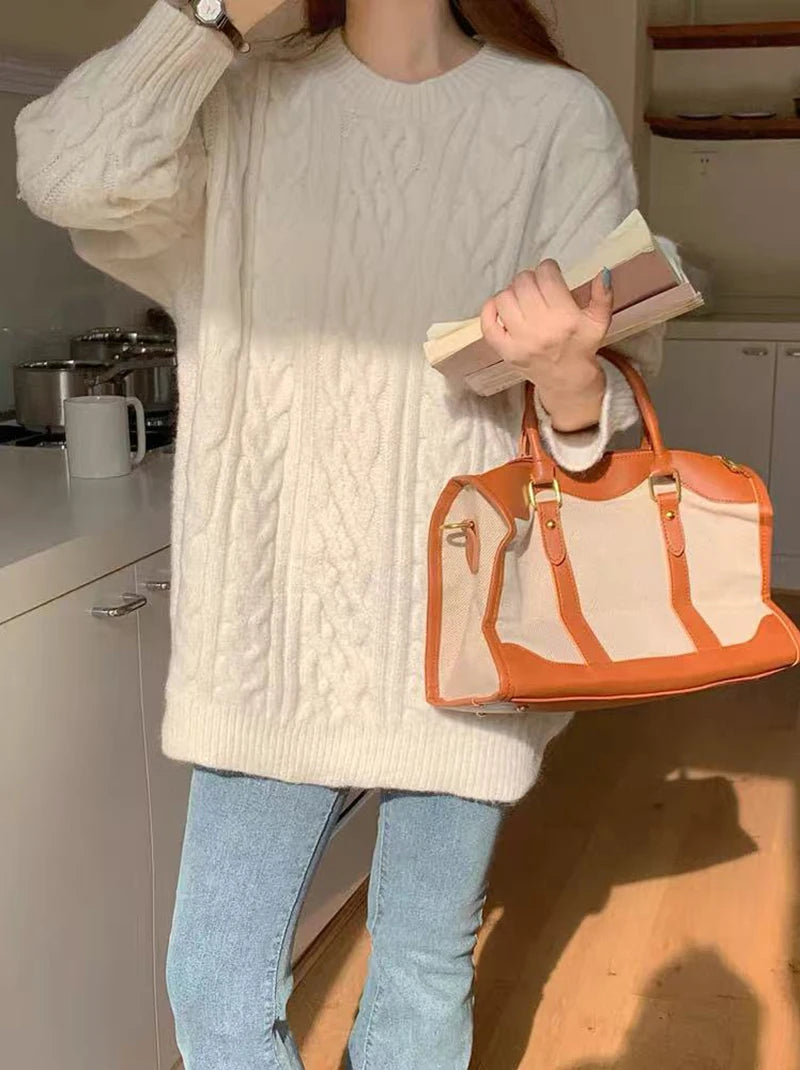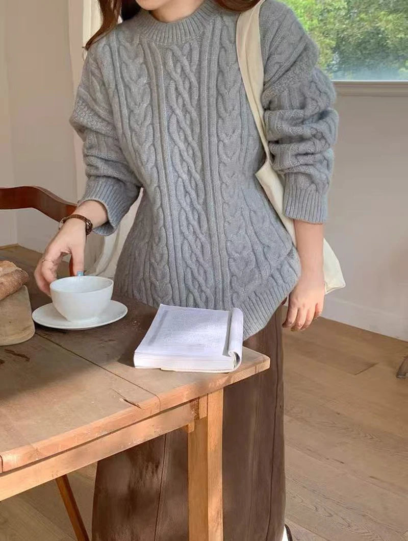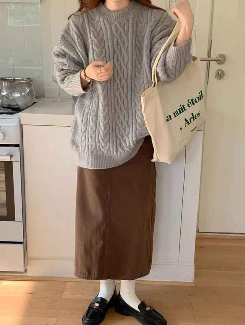 Bxoxo Autumn Knitted Sweaters for Women Korean Loose Lazy Style Casual Pullover Y2K Fashion All Match Thick Warm Soft O Neck Jumper