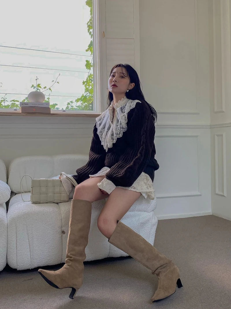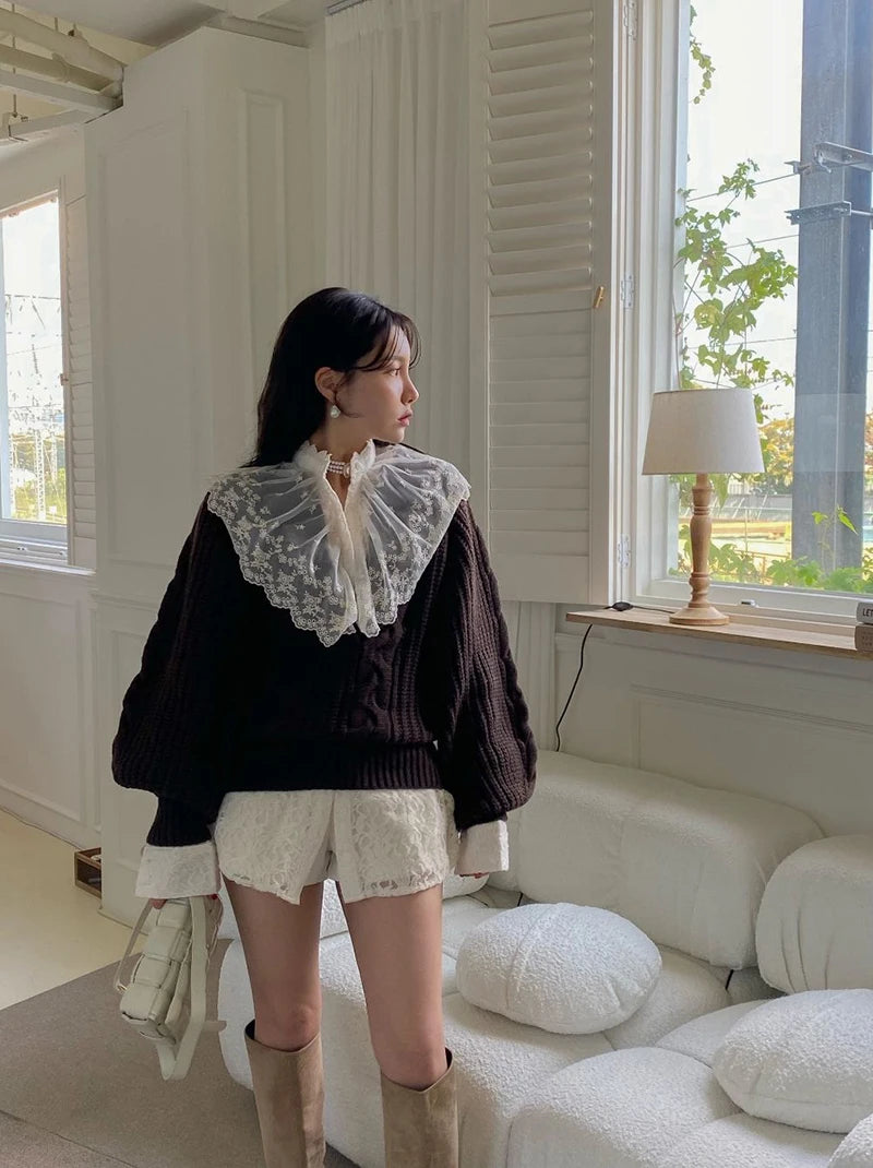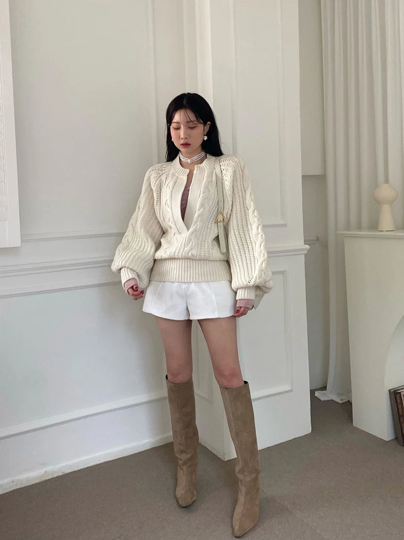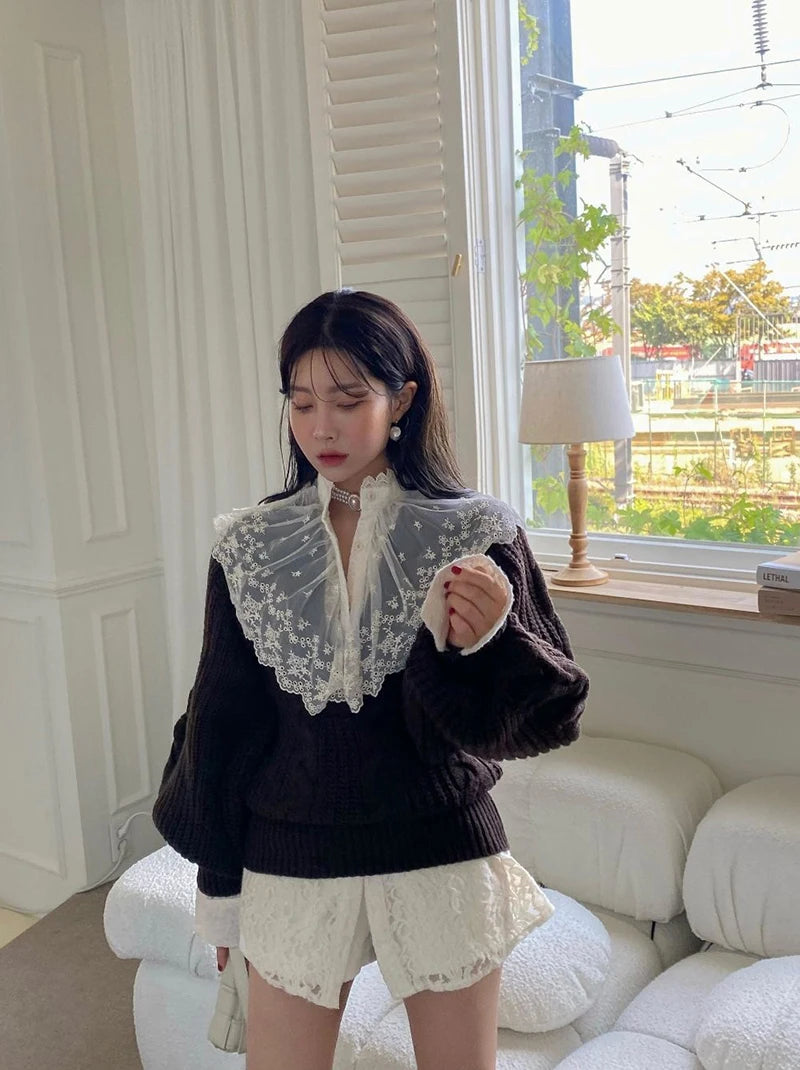 Bxoxo Autumn Lantern Sleeves Knit Sweater for Women Korean Chic V Neck Loose Thick Pullover Y2K Ladies Streetwear All Match Jumpers