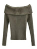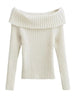 Bxoxo Autumn Winter Solid Color Rib Knitted Off the Shoulder Pullover Sweater Sexy Women Full Sleeve Slim Stretch Knitwear Jumper