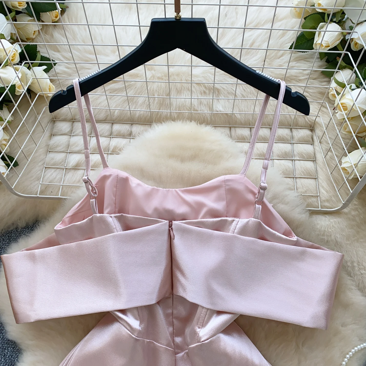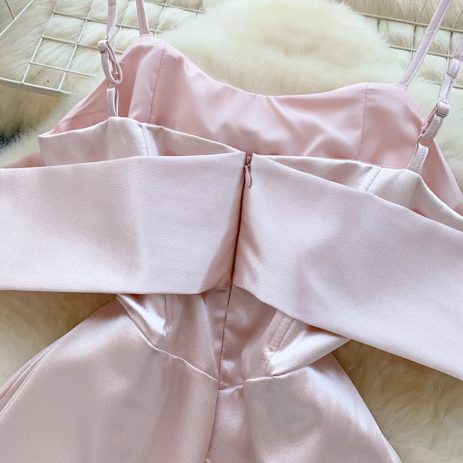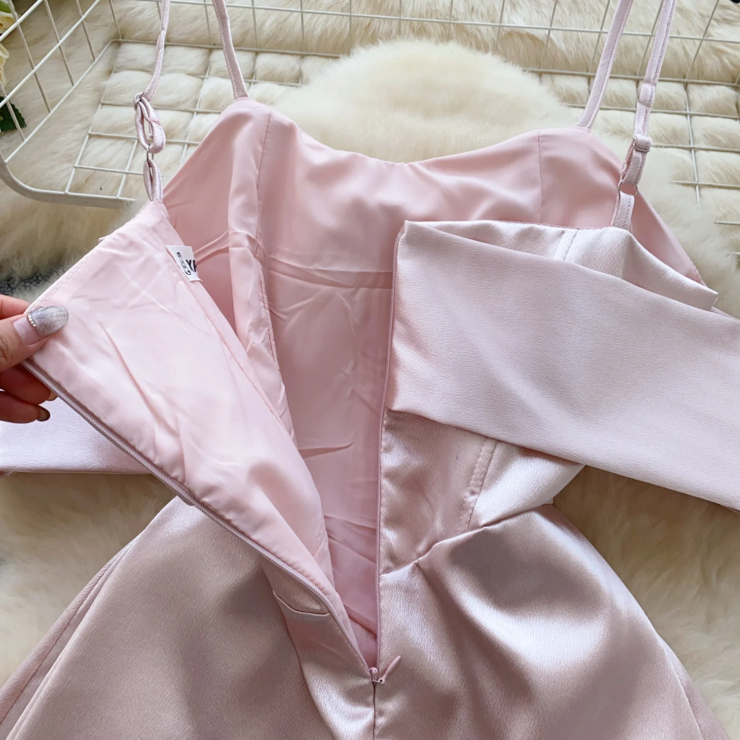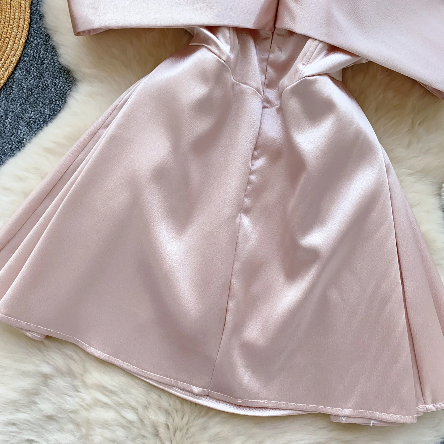 BXOXO Birthday Party Satin Dress Women Sleeveless Off Shoulder Zipper Design Bodycon Senior Sexy Fashion Bow Mini Dresses