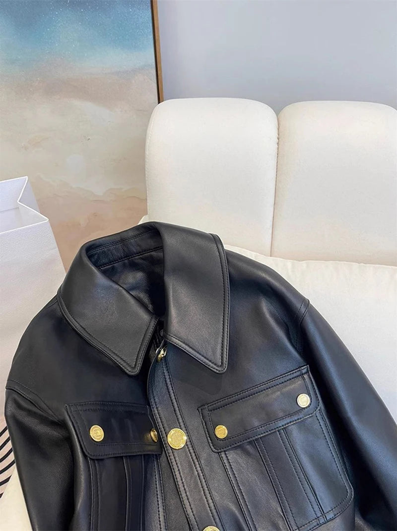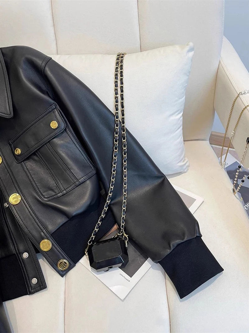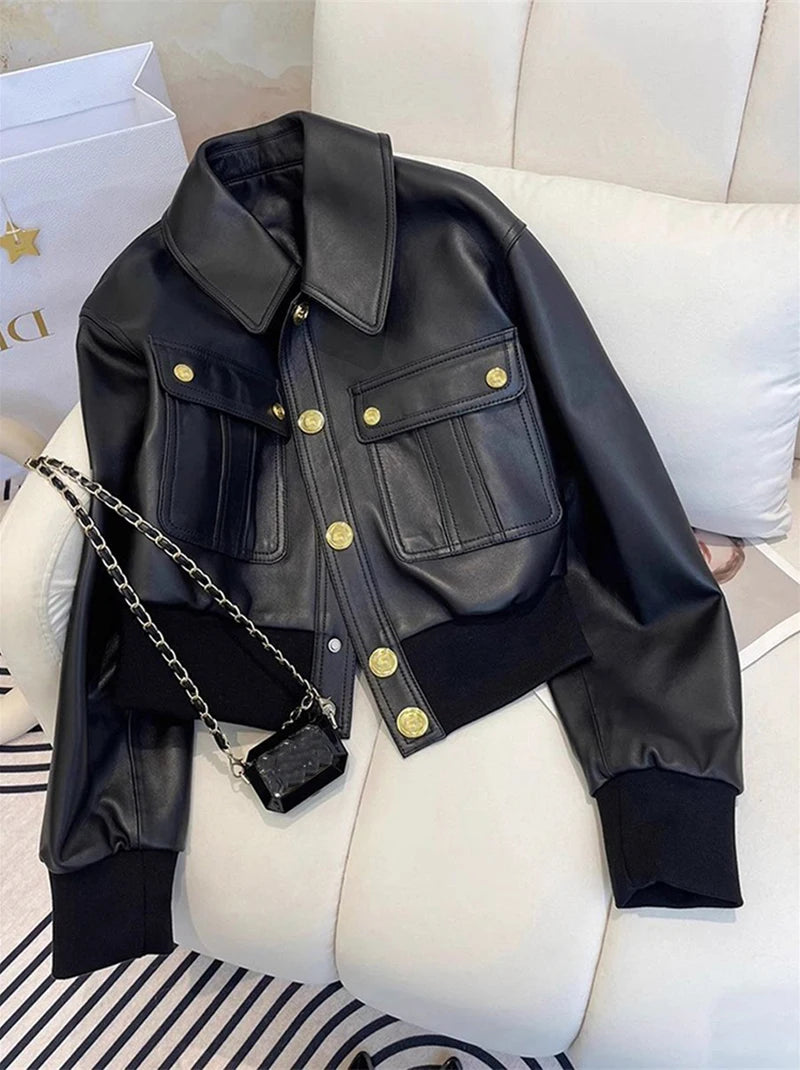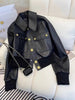Bxoxo Black Pu Leather Crop Jacket for Women Y2K Fall Loose Streetwear Lapel Motorcycle Coats Korean Single Breasted All Match Outwear