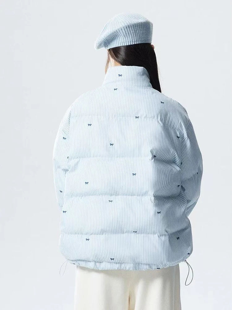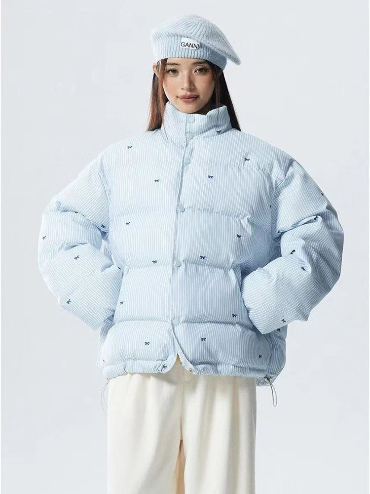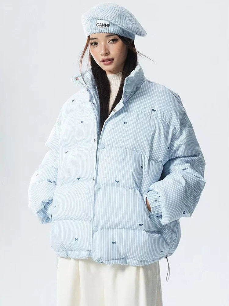 Bxoxo Blue Striped Crop Parkas for Women Y2K Sweet Butterfly Loose Cotton Warm Jacket Winter Fashion Preppy All Match Bread Outwear