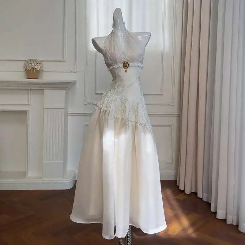 BXOXO Brooch Women's Neck-mounted Dress Bandage Lace Hollow Out Sleeveless Backless V-Neck 2025 Spring New Dresses Female 3QW0005