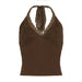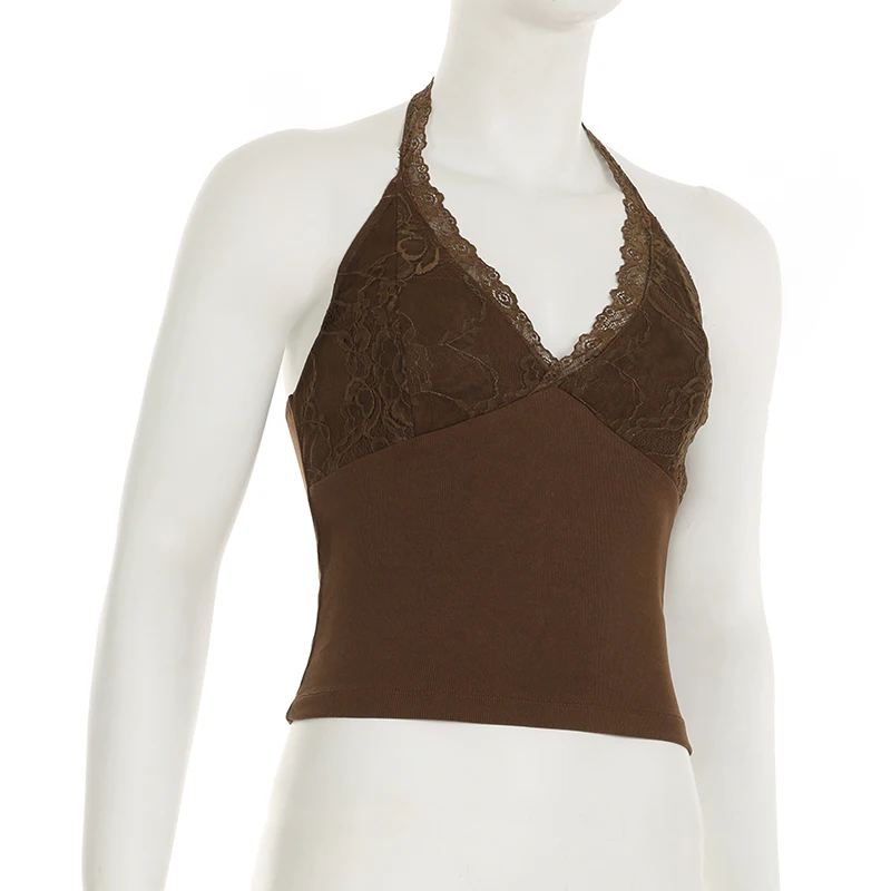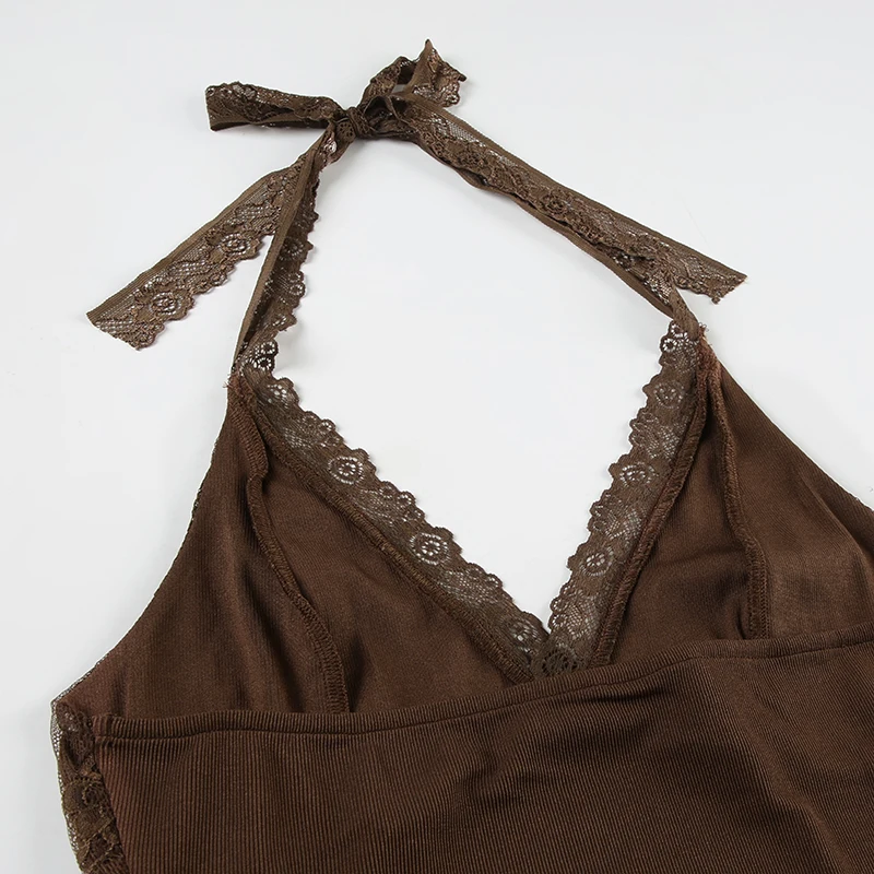 BXOXO Brown Lace Bandage Halter Tank Top Women Grunge 2000s Sleeveless Tees Vintage y2k Skinny V Neck Vest Summer Street Style