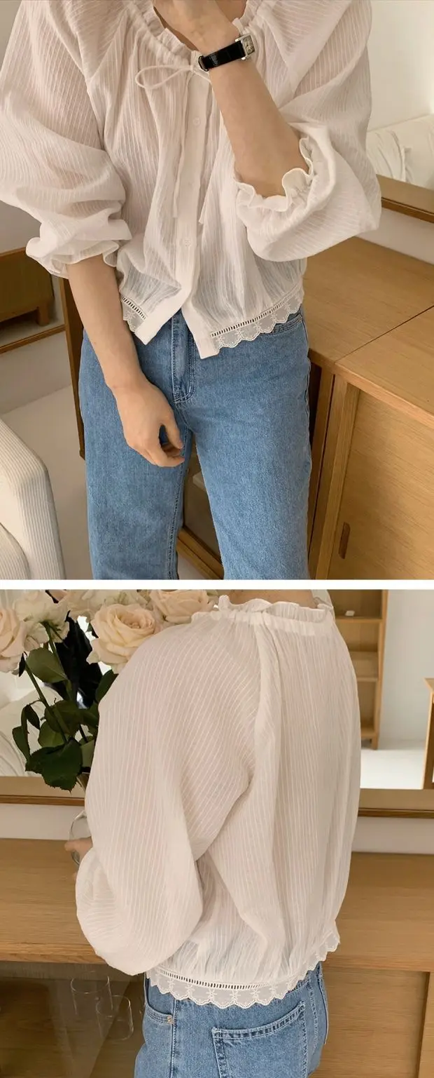 This chic French-style lace shirt features a unique design that is both stylish and flattering, perfect for the fashion-forward woman.