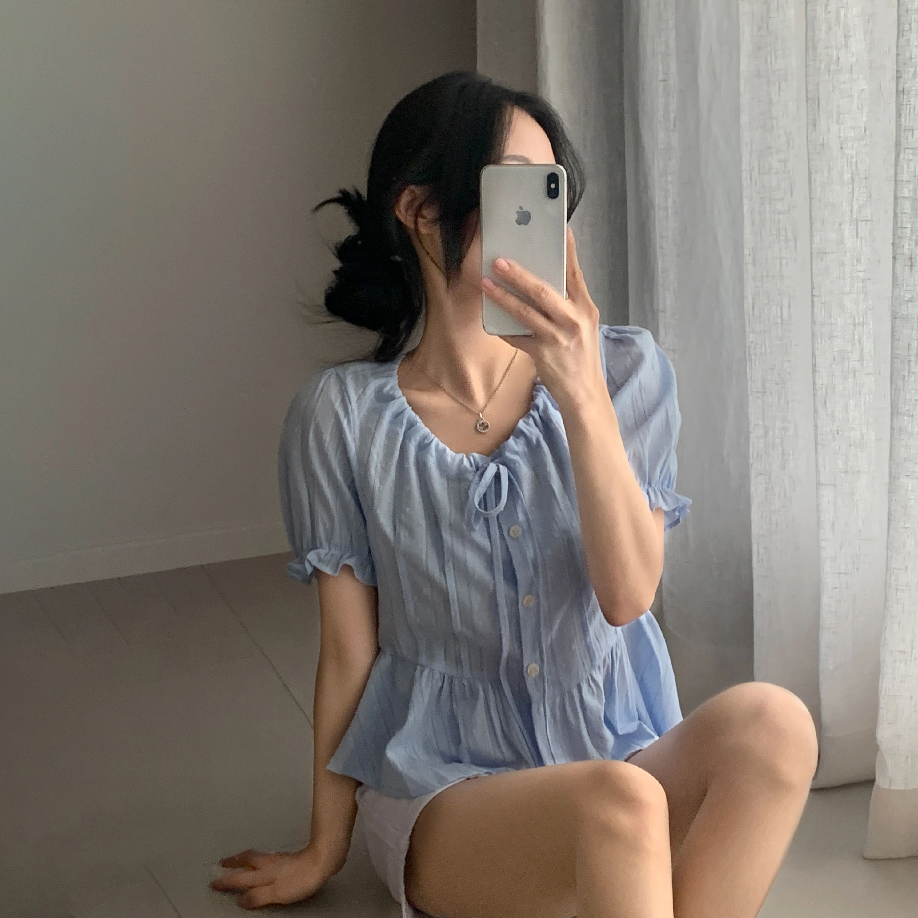 With its round neck and bubble sleeves, this shirt is versatile enough to be paired with any outfit, making it a must-have in your wardrobe.