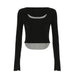 Bxoxo Contrast Stitching Crop Top Harajuku y2k Casual Full Sleeve Patchwork T-shirts for Women Fall Basic Tee Ladies Streetwear