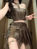 Bxoxo Cool Design Neck Sleeveless Top High Waist Irregular Splicing Lace Retro Suit Tide Pure Desire Wind Spice Girls Women's Clothing