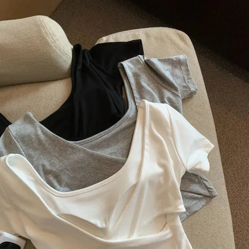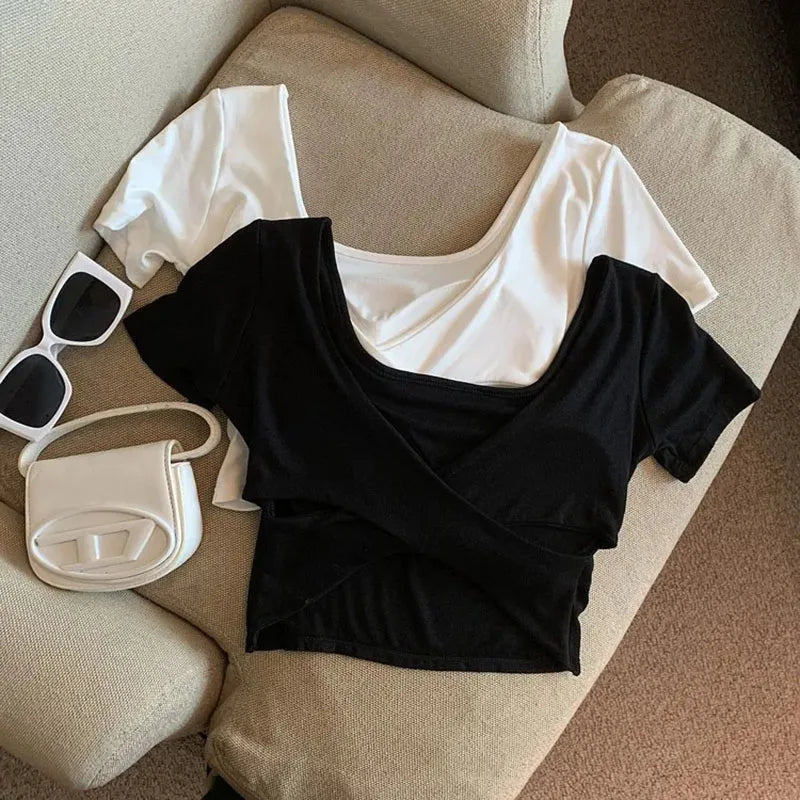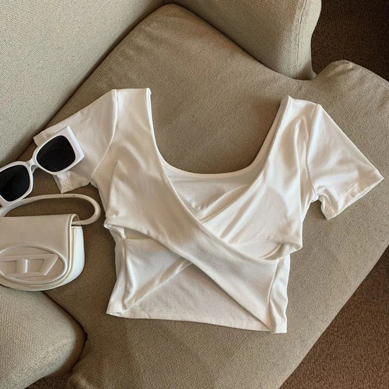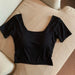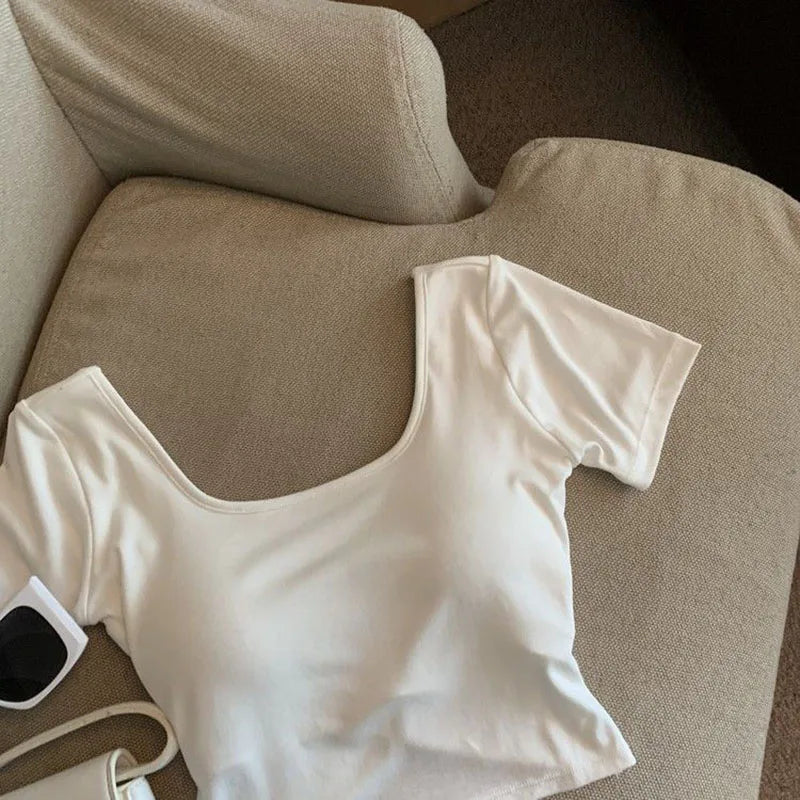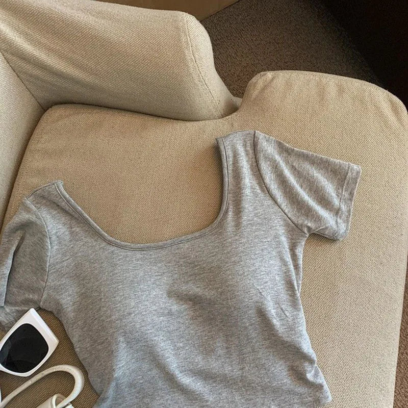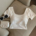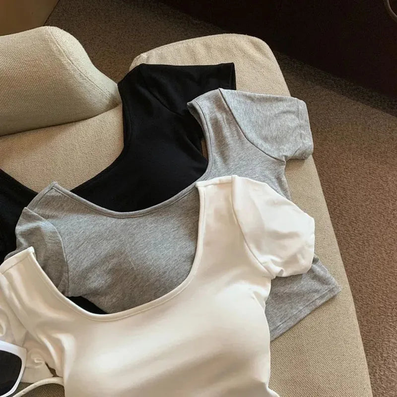 Bxoxo Cotton Square Neck T-Shirt Women Summer Solid Korean Casual Slim Crop Tops Female Fashion Streetwear Simple Basic All-Match Tees