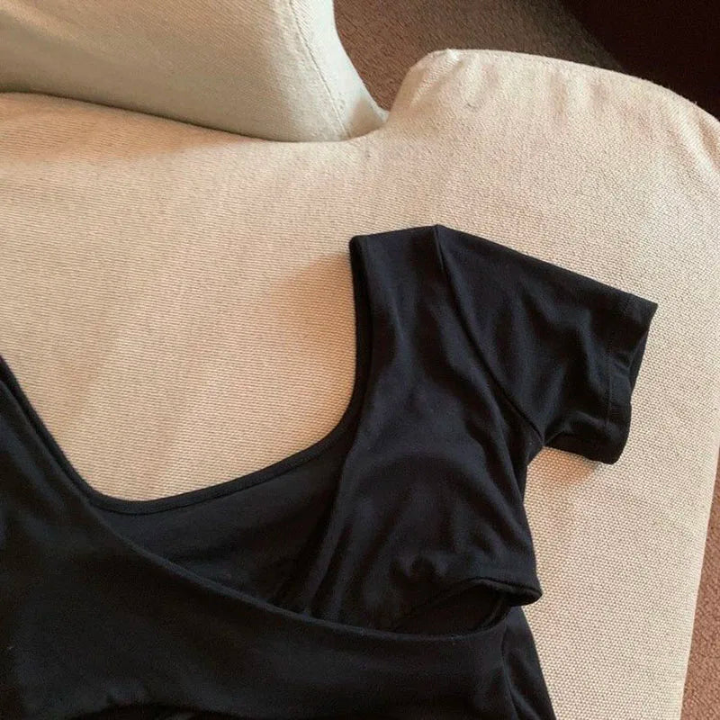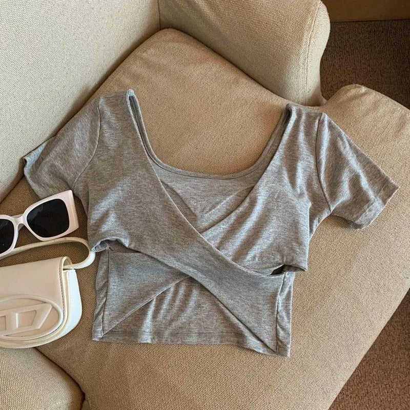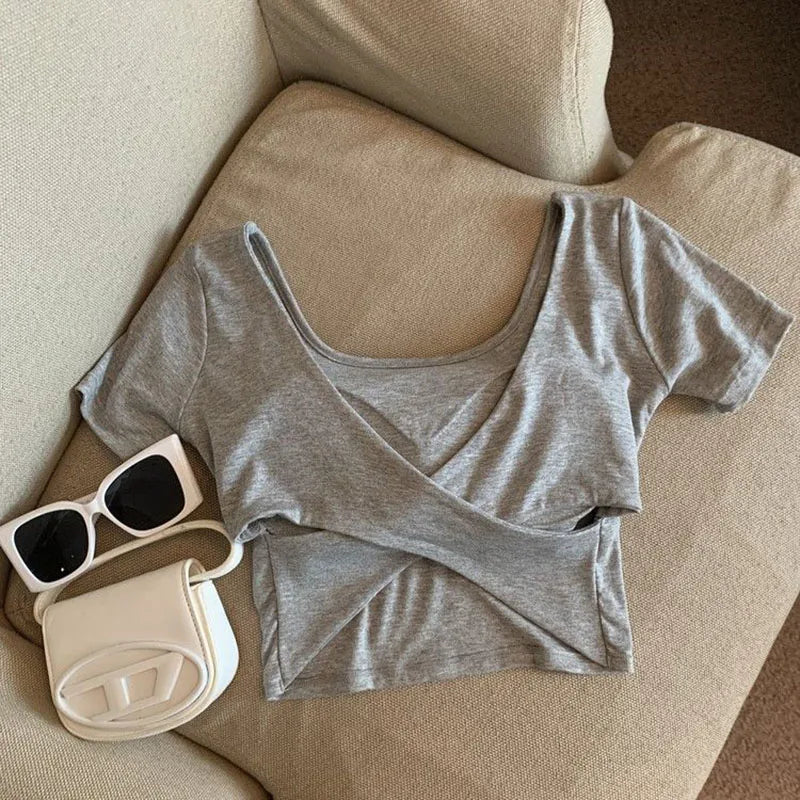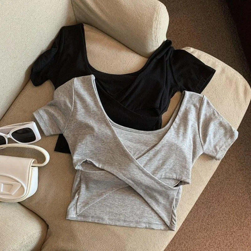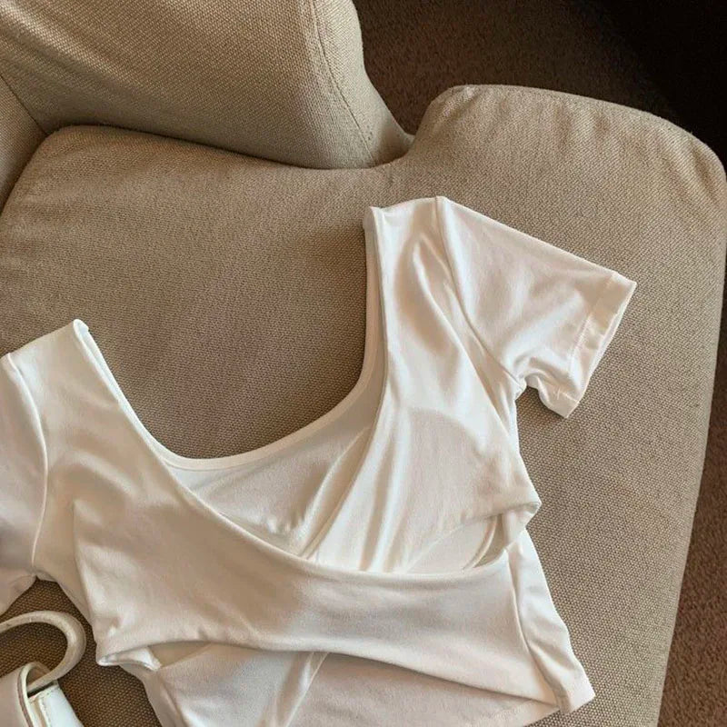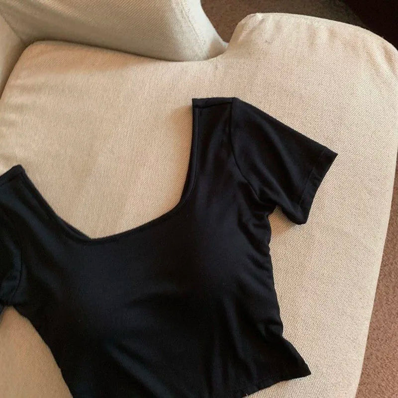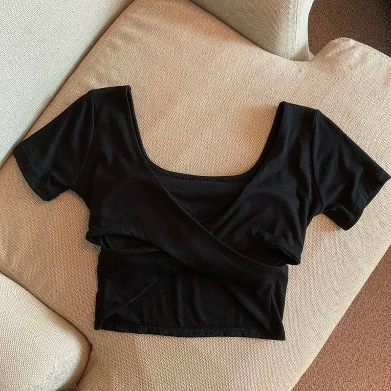 Bxoxo Cotton Square Neck T-Shirt Women Summer Solid Korean Casual Slim Crop Tops Female Fashion Streetwear Simple Basic All-Match Tees