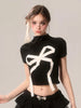 Bxoxo Cropped Slim Y2K T Shirt Women Streetwear Bow Print Sexy Short Sleeve Tees Vintage American Gothic Harajuku Black Tops New