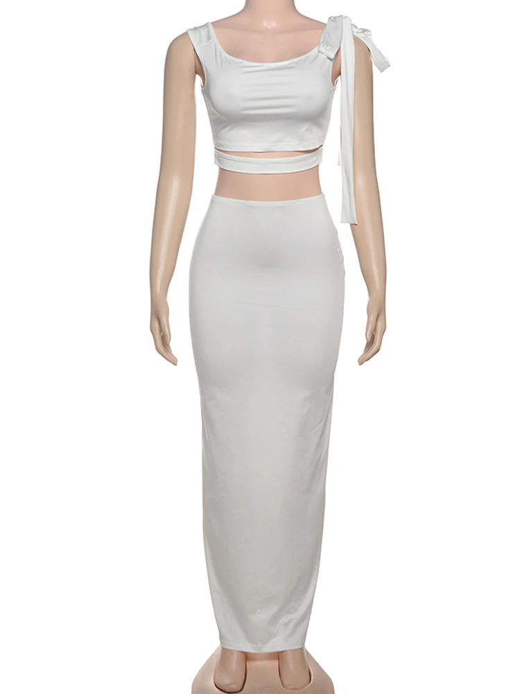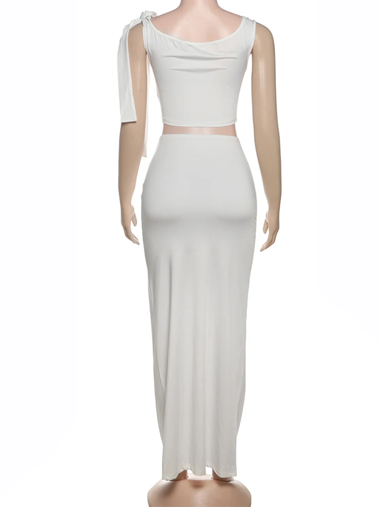 BXOXO Elegant 2 Piece Set Women Irregular Hollow Crop Tops+Skinny Stretch Long Skirts Vacation Fashion Casual Trend Outfits