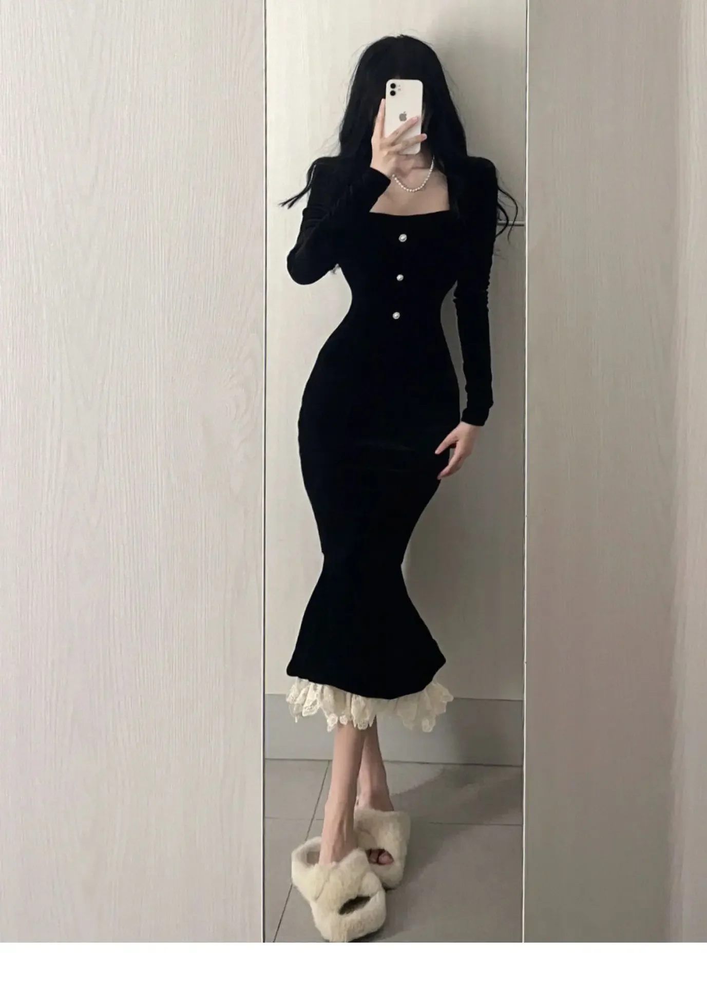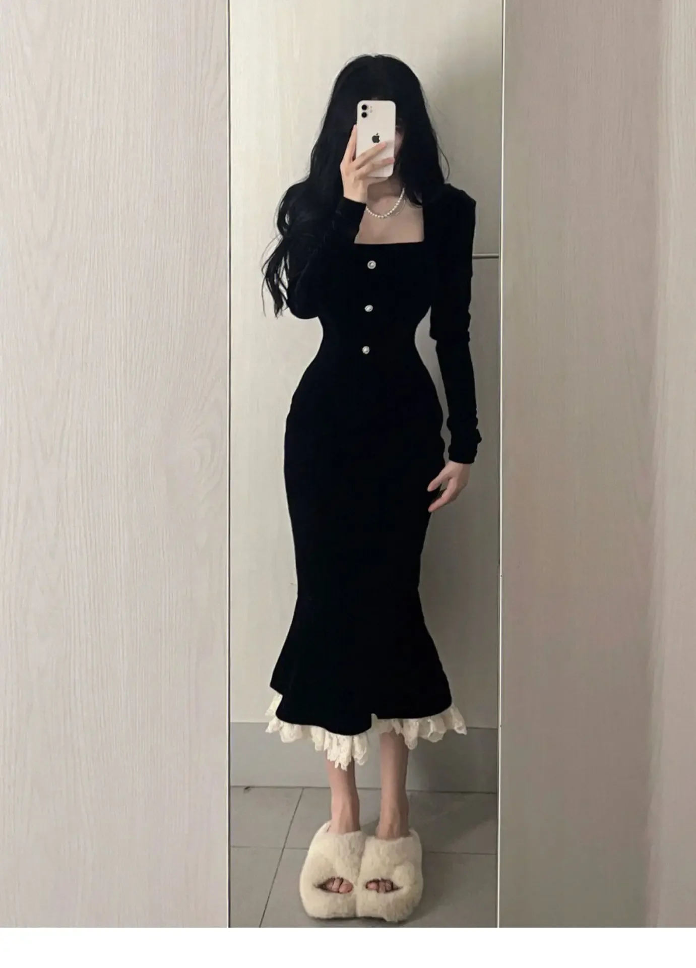 • Autumn and Winter Wear :Perfect for autumn and winter, this long-sleeved dress provides warmth while maintaining an elegant appearance.