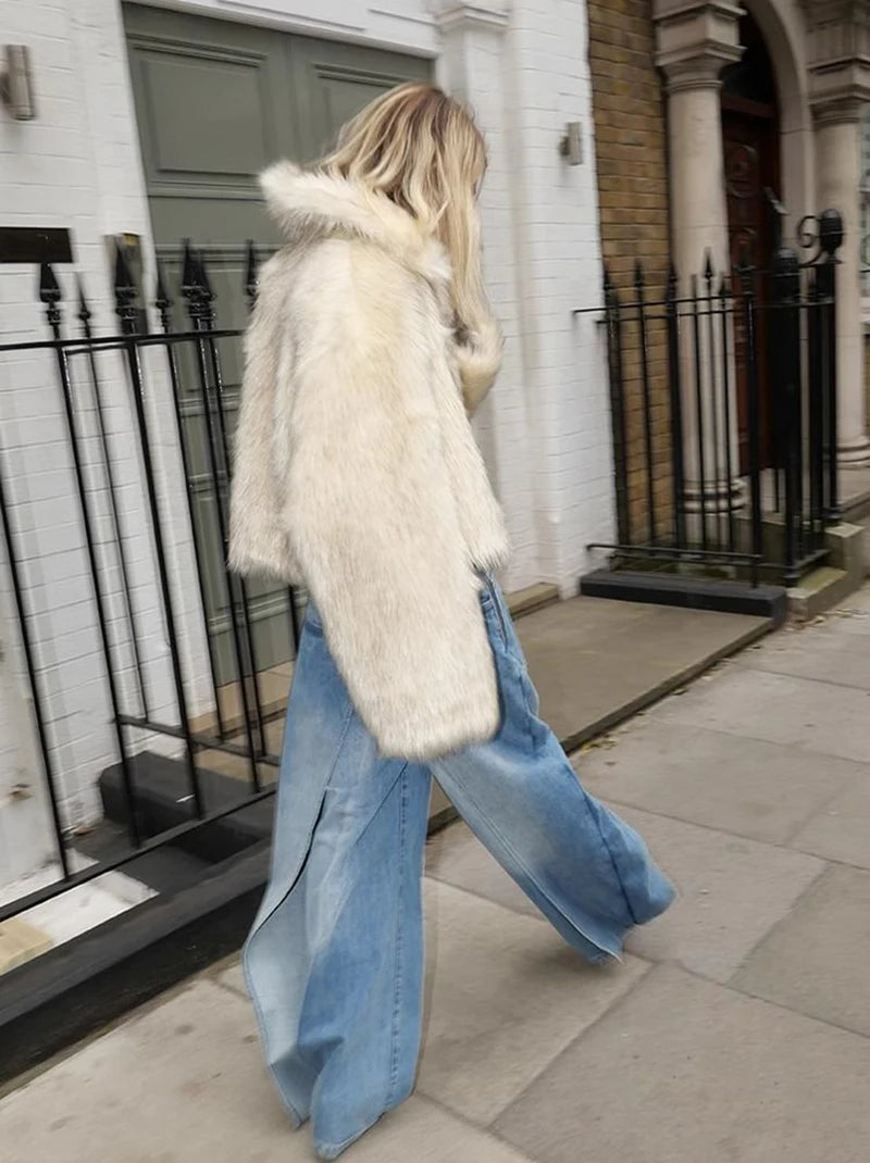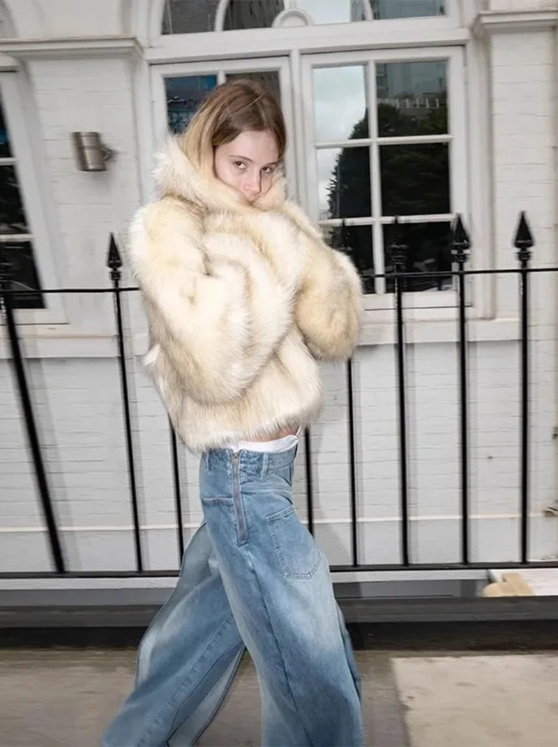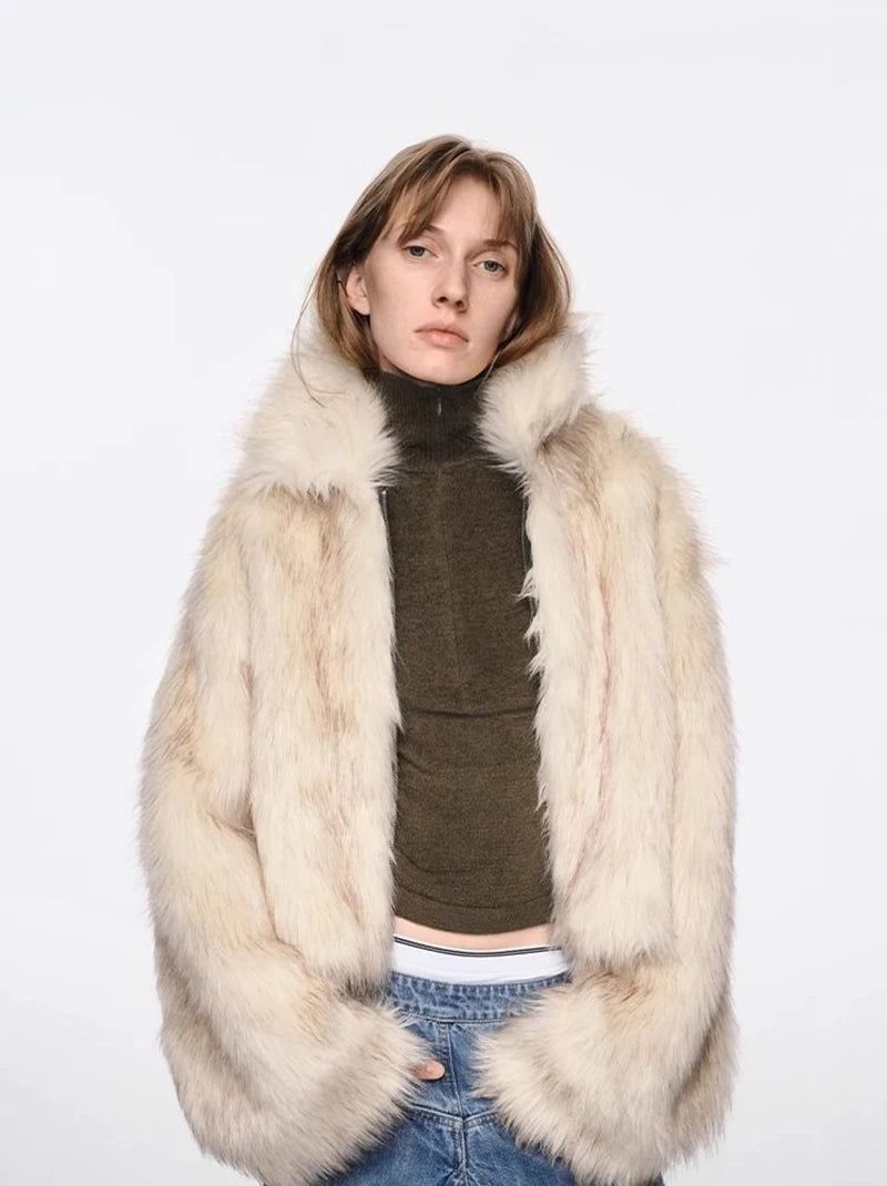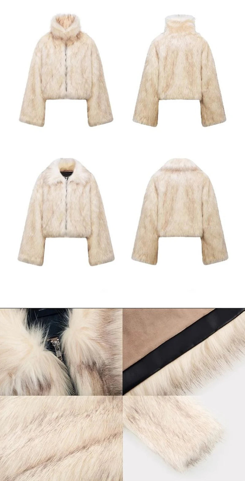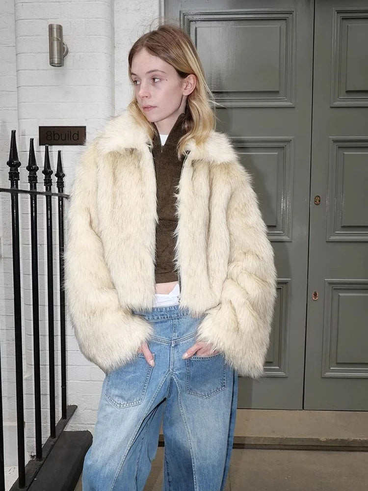 Bxoxo Elegant Faux Fox Fur Coats Women Y2K Winter Thick Warm Casual Plush Jackets Y2K Streetwear All Match Faux Fur Outerwear New