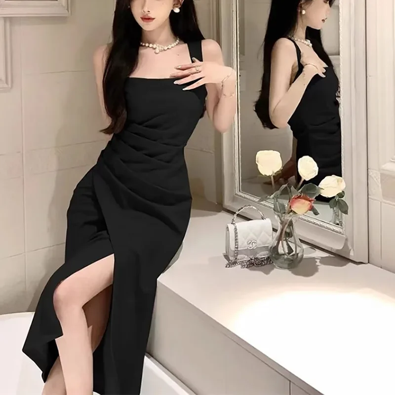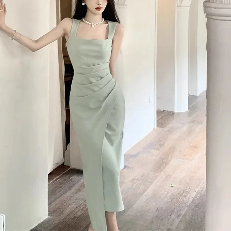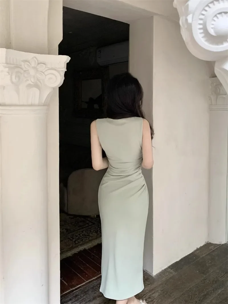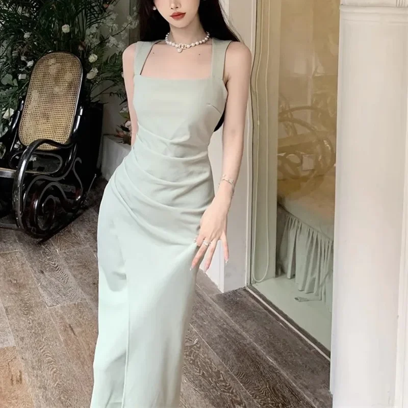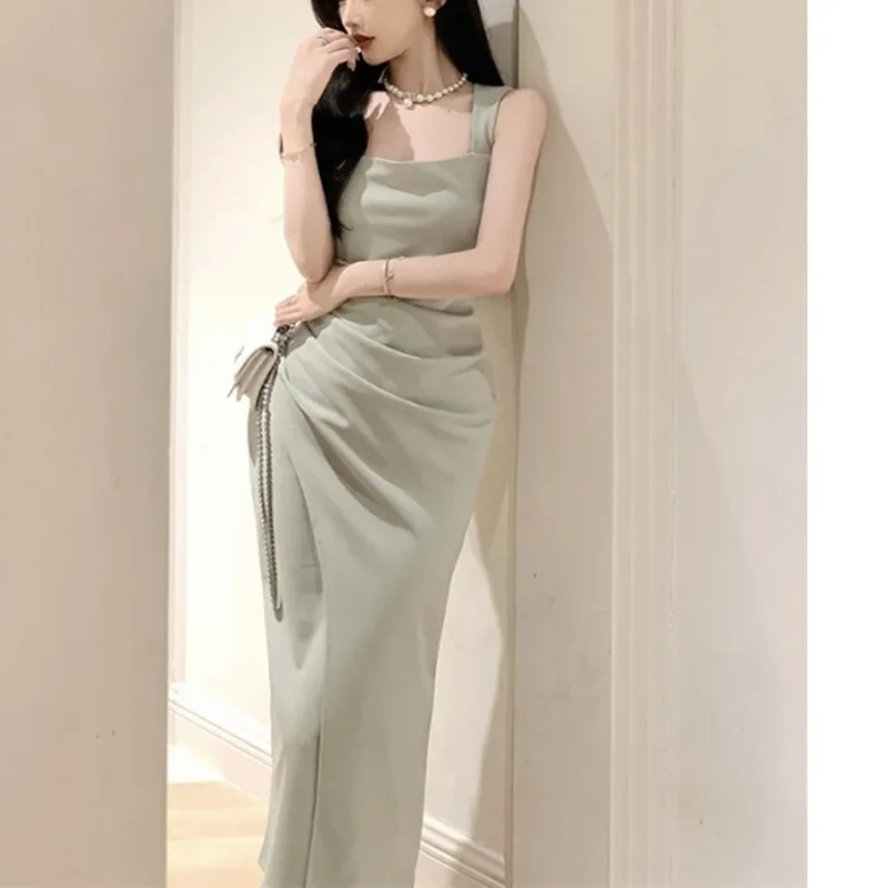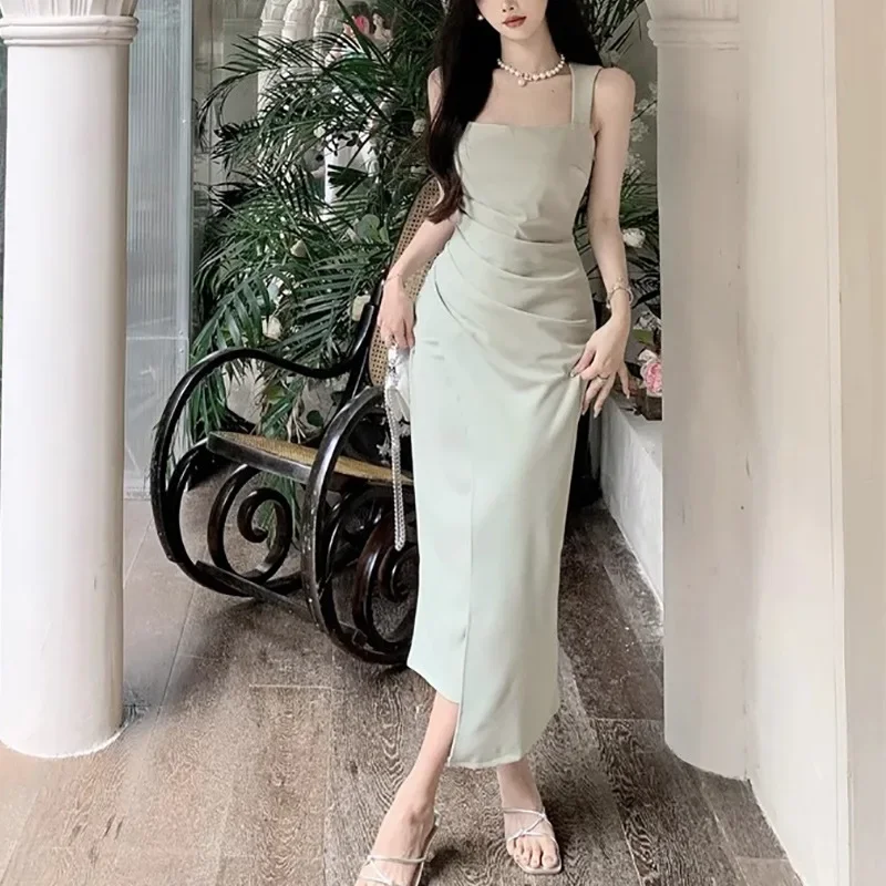 Bxoxo Elegant French Style Long Slim Fit Summer New Release High-end Feel Tank Dresses Women's Smooth Slim Fit Satin Dress