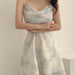 BXOXO [Elegant | Ink Wash] Elegant | A-Line Camisole Dress for Women | Ink Wash Painting Print Mesh Spliced Design, Featuring a Back with Adjustable Hollow Sexy Shoulder Straps