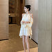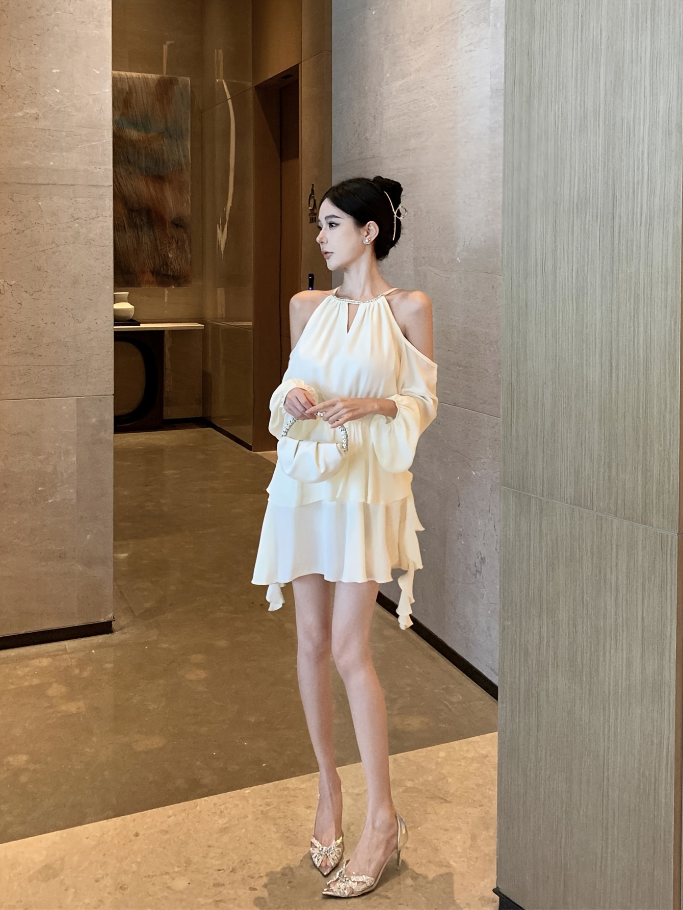 BXOXO [Elegant Off-Shoulder Dress] Elegant Off-Shoulder Ruffle Dress - Semi-Sheer, High Waist, Pleated Skirt, Polyester - Spring/Fall Fashion, Princess Sleeve