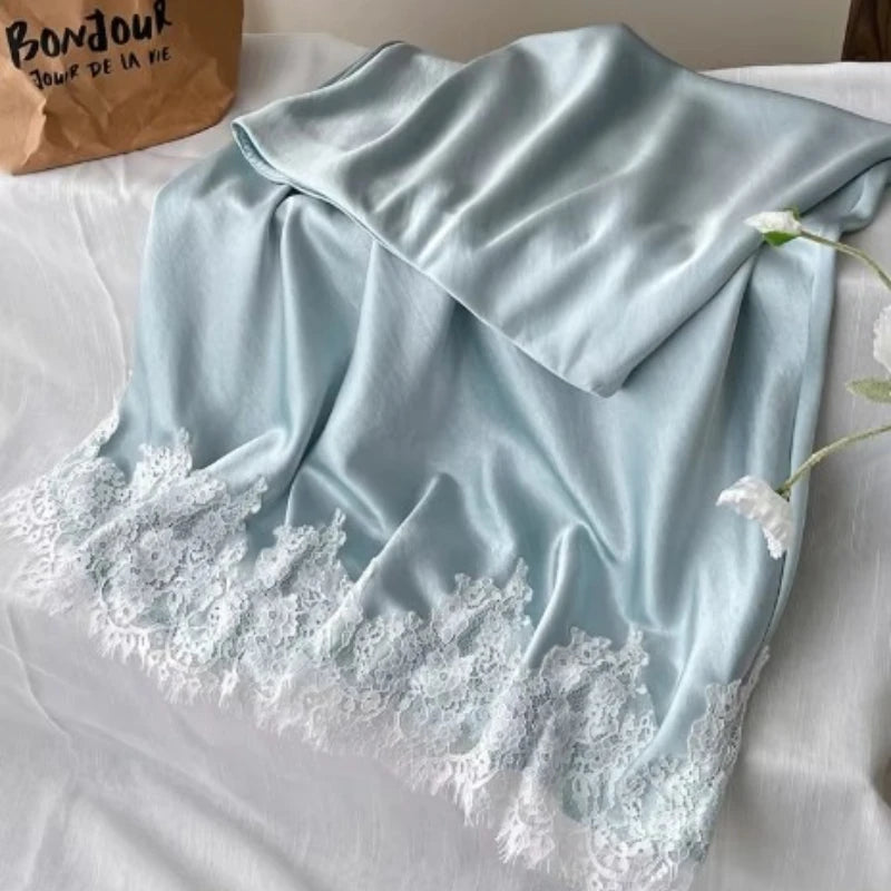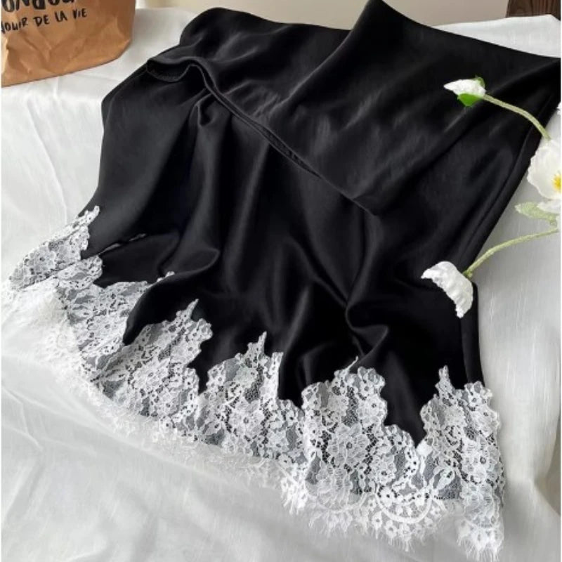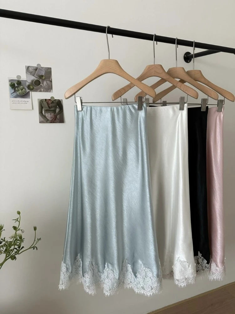 Bxoxo Elegant Satin Skirt Women French Style Lace Patchwork Long Skirts Fairycore Fashion Slim Up A-line Skirts Aesthetics