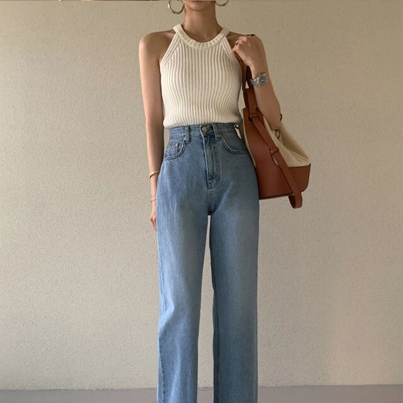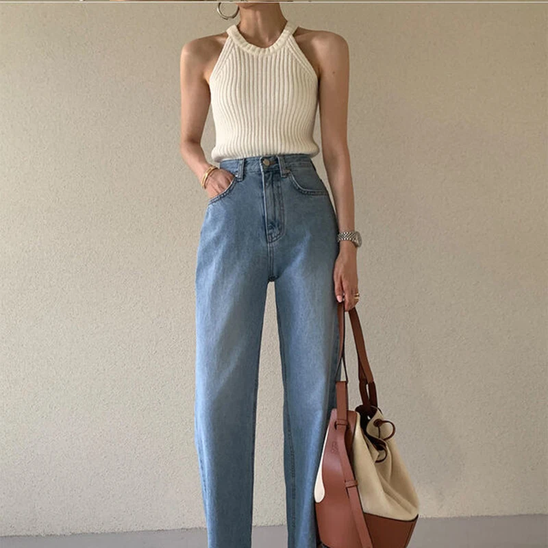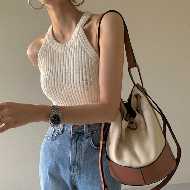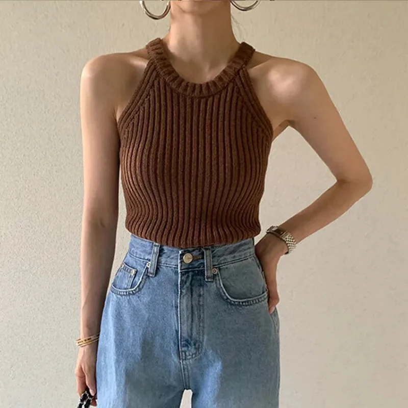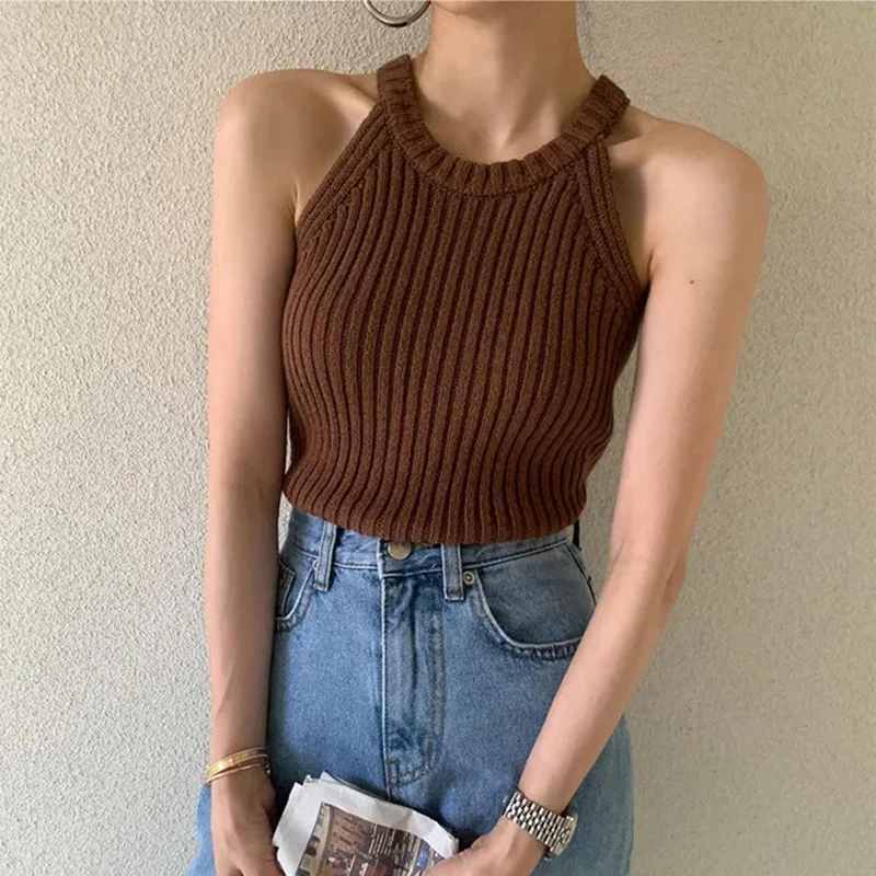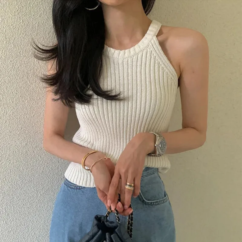Bxoxo Elegant Slim Knitted Camis for Women Summer Korean Chic O Neck Sleeveless Tank Y2K Solid Simple Basic All Match Vest Mujer