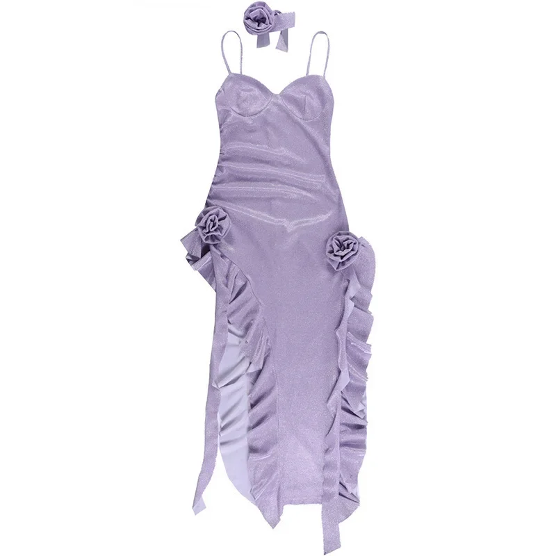 • Elegant Design : This dress features a European and American-style elegant design, perfect for summer occasions. Its slim fit and powder flower strap add a touch of sophistication.