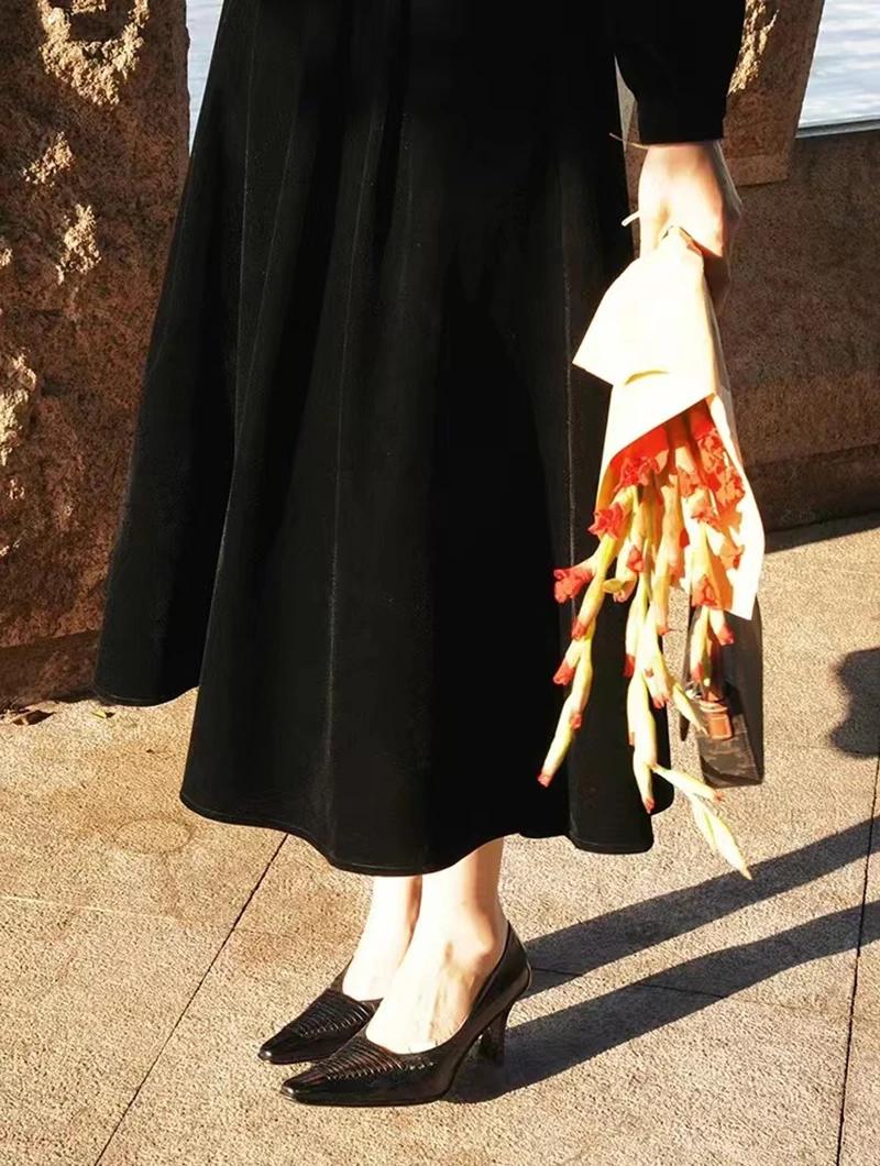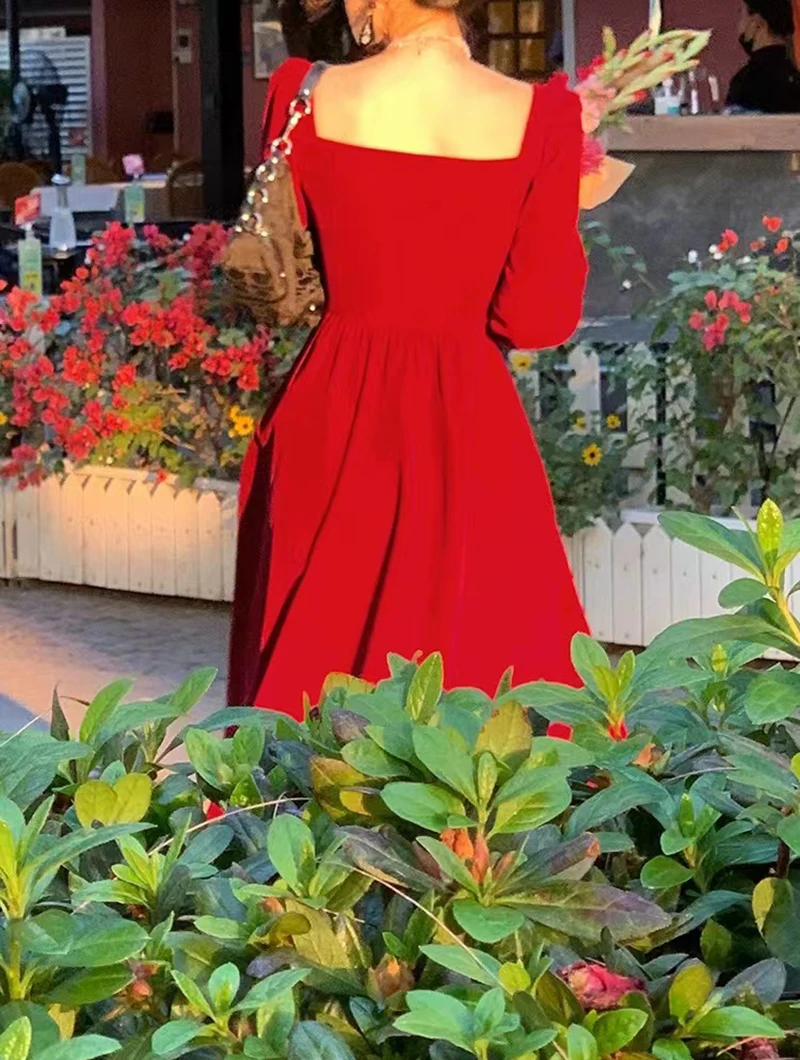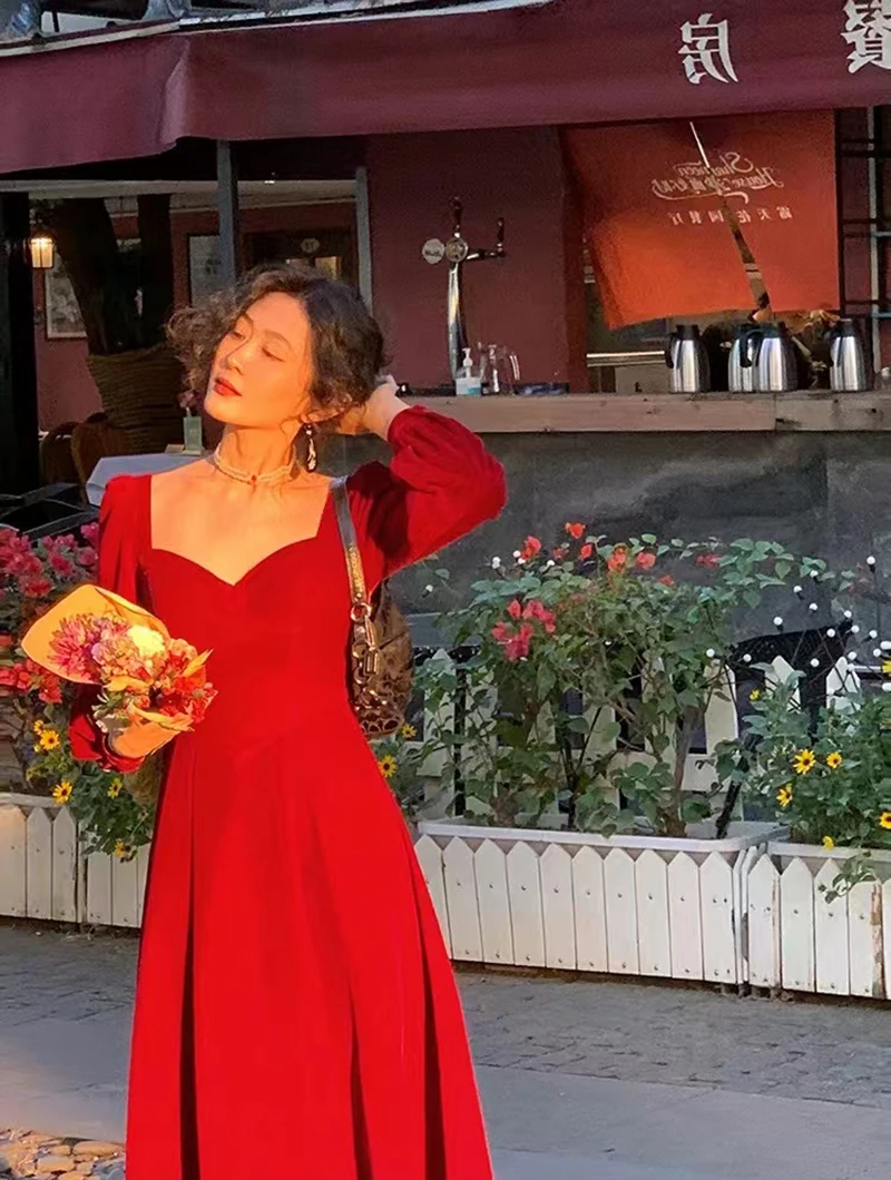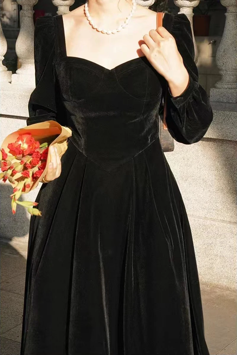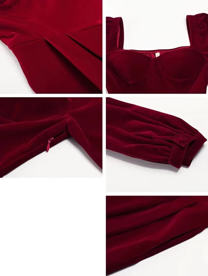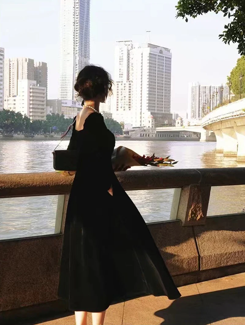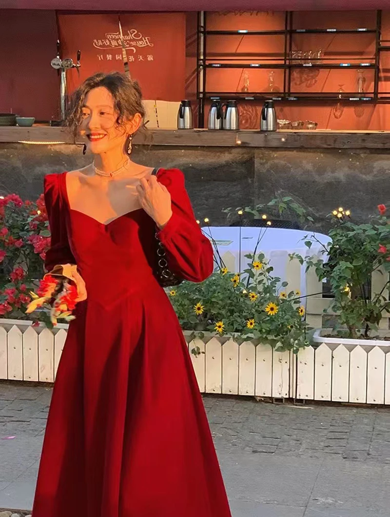 Bxoxo Elegant Velvet Midi Dress Women Vintage Korean Slim V Neck A Line Fairy Dress Female Autumn Long Sleeve All-Match Party Vestidos