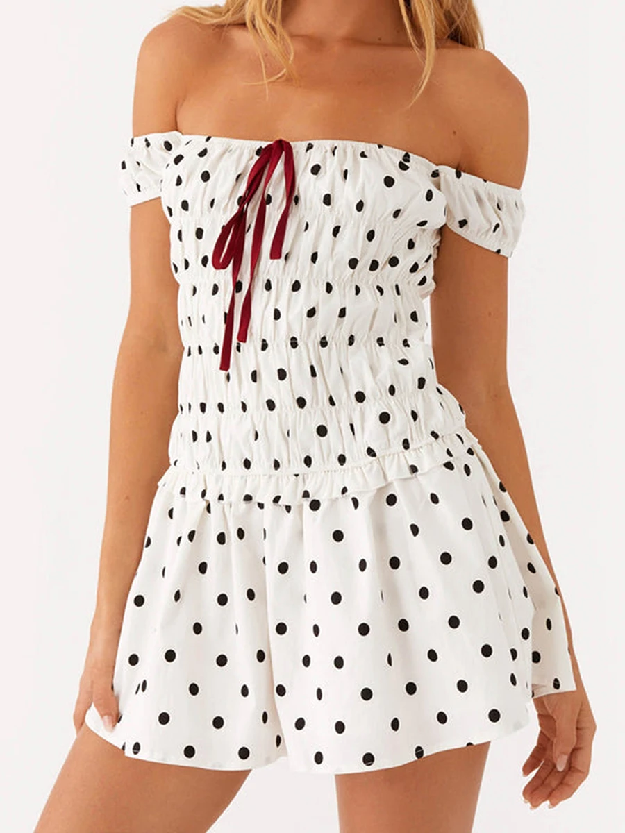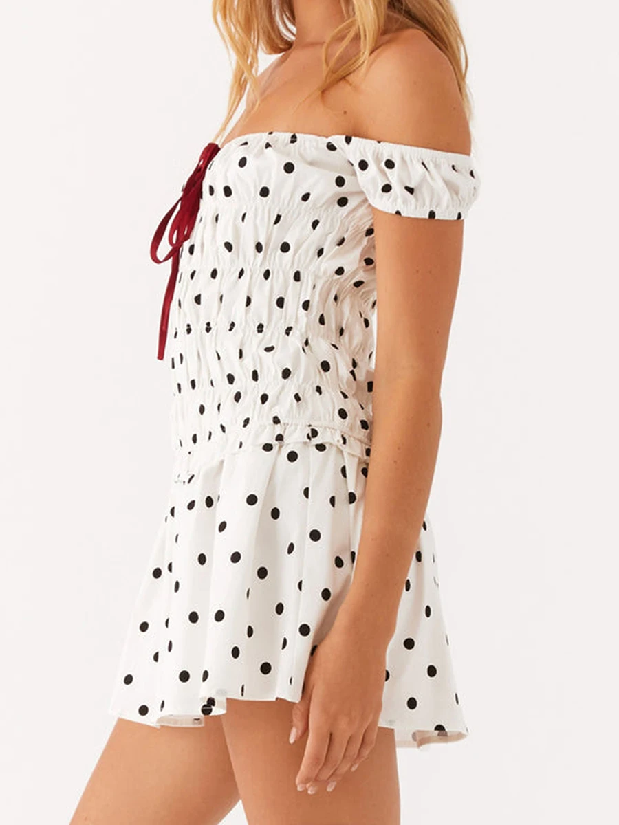 BXOXO Elegant Women's Summer Mini Party Dresses Short Sleeve Off Shoulder Solid Color/Dot Print Dresses Holiday Streetwear