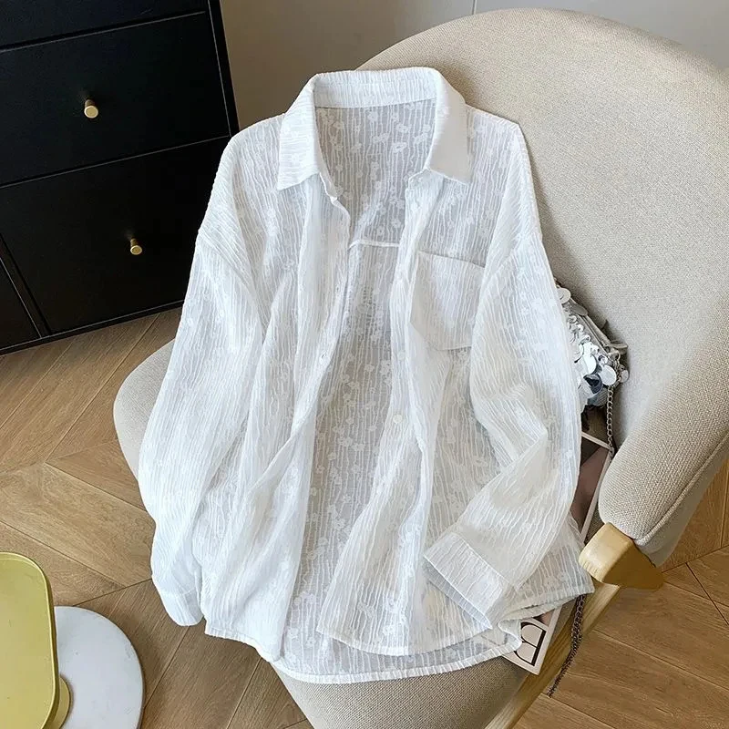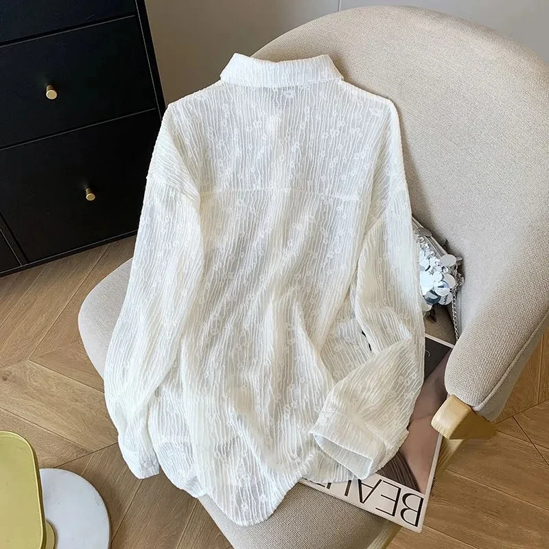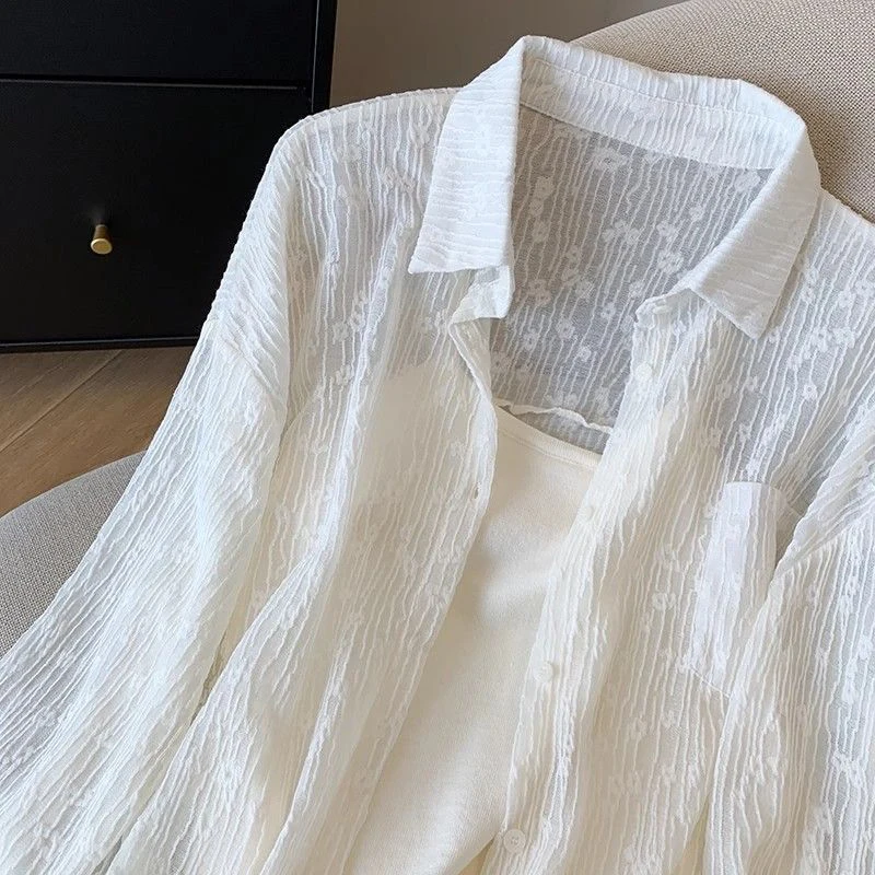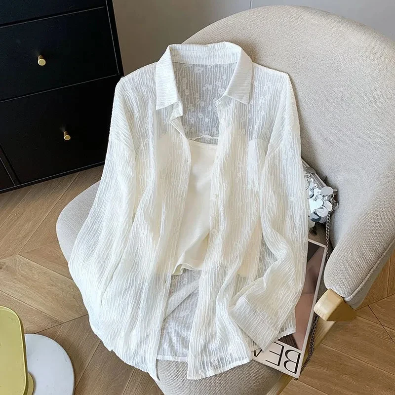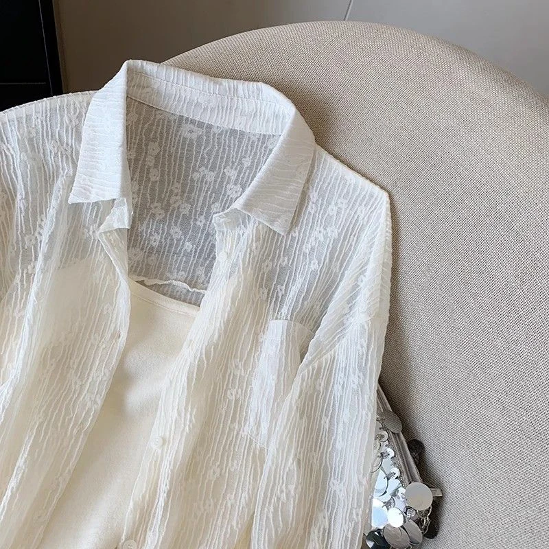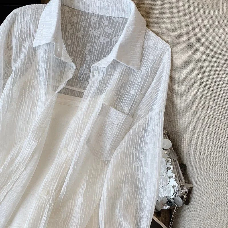 Bxoxo Embroidered Lace Shirts Women Summer Loose No Sling Korean Button Simple Shirt Fashion Baggy All Match Thin Sun Protection Top
