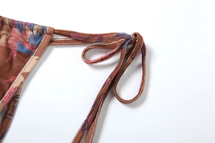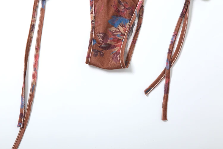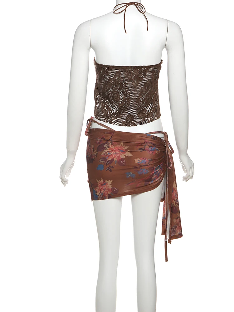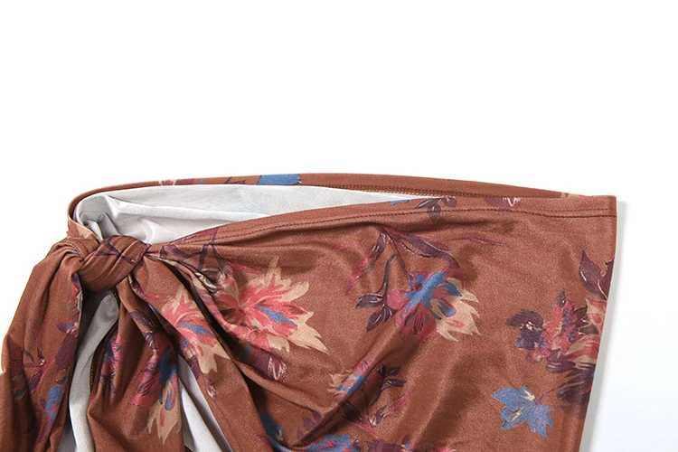 BXOXO Fashion 3 Piece Set Women Flower Print Mesh Patchwork Camisole+Lace-up Briefs+Ruched Knot Skirts Beach Style Outfits