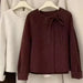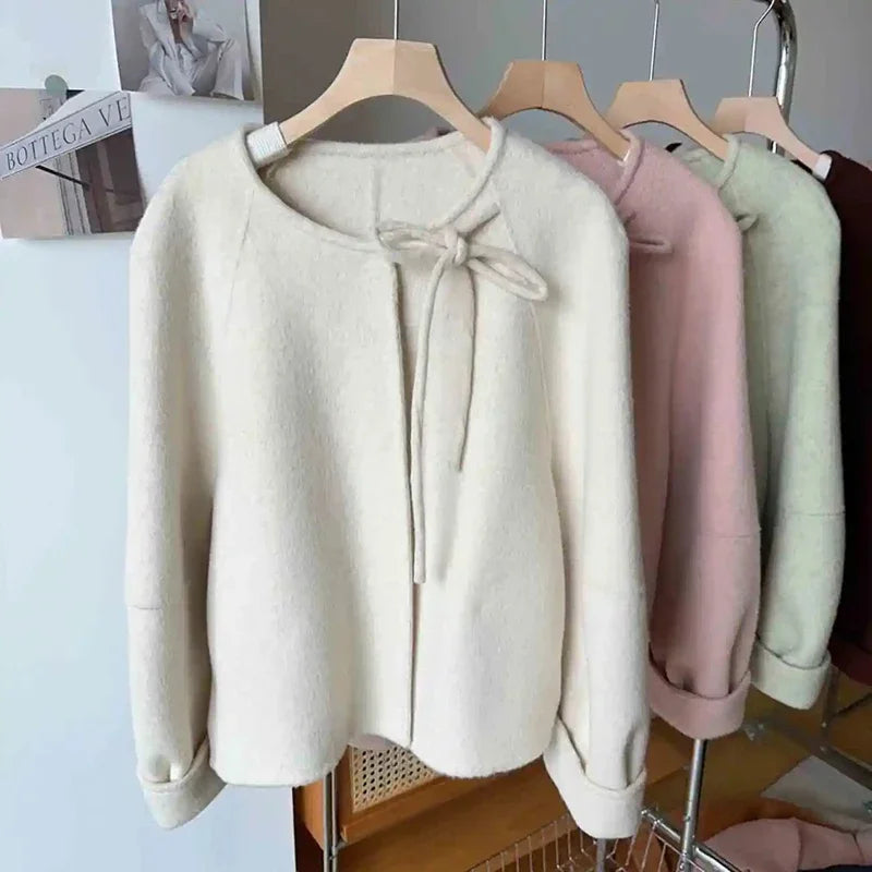 Bxoxo Fashion Faux Wool Black Coat Women Korean Thickened Bow Lace Up Casual Jacket Y2K Autumn Loose Streetwear Female Blends Outwear