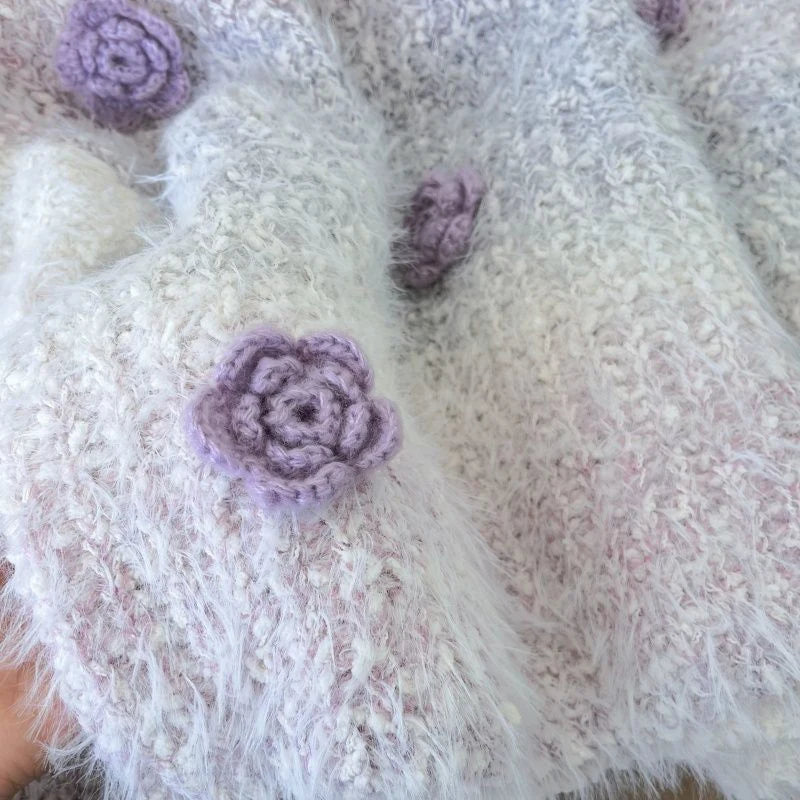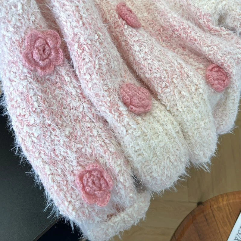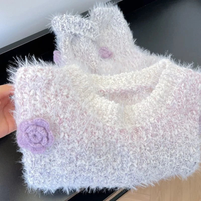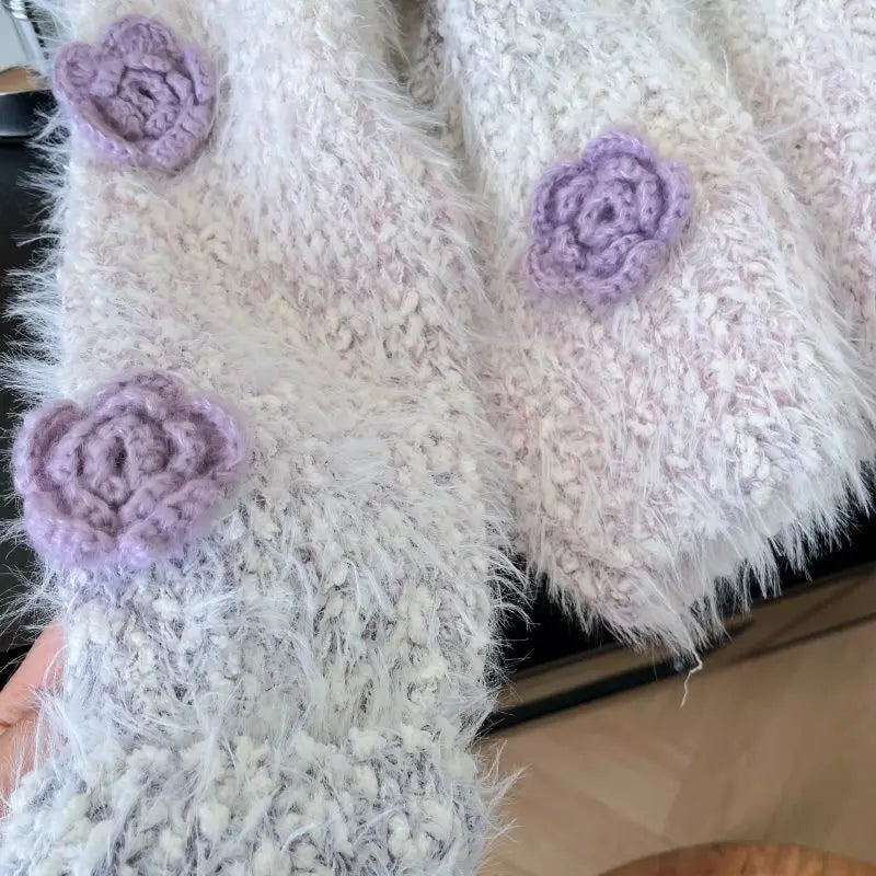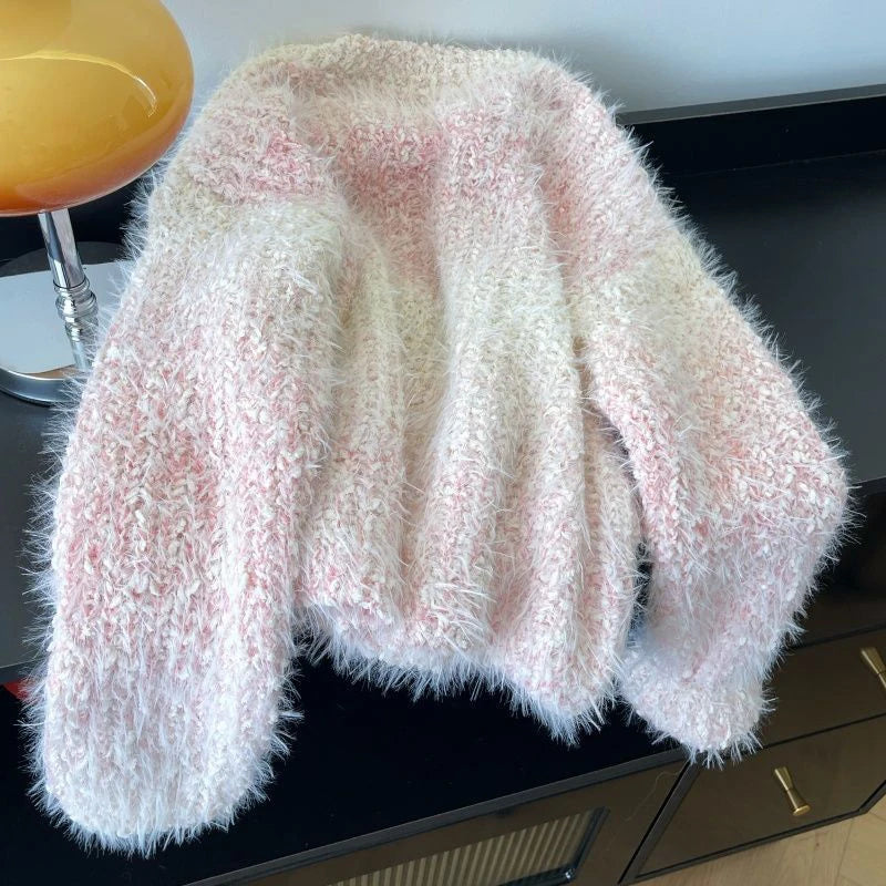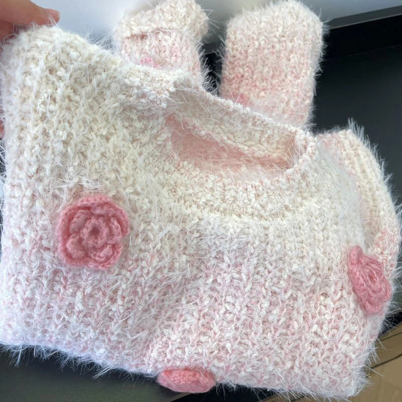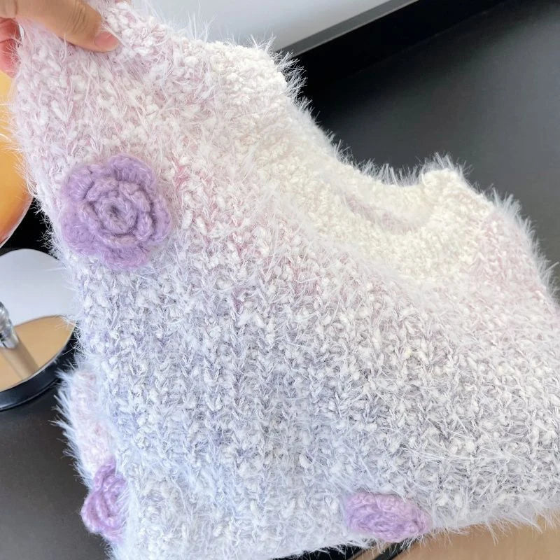 Bxoxo Fashion Gradient Faux Mink Fleece Knit Sweater Women Autumn 3D Flower Decoration Casual Pullover Korean Loose All Match Jumper