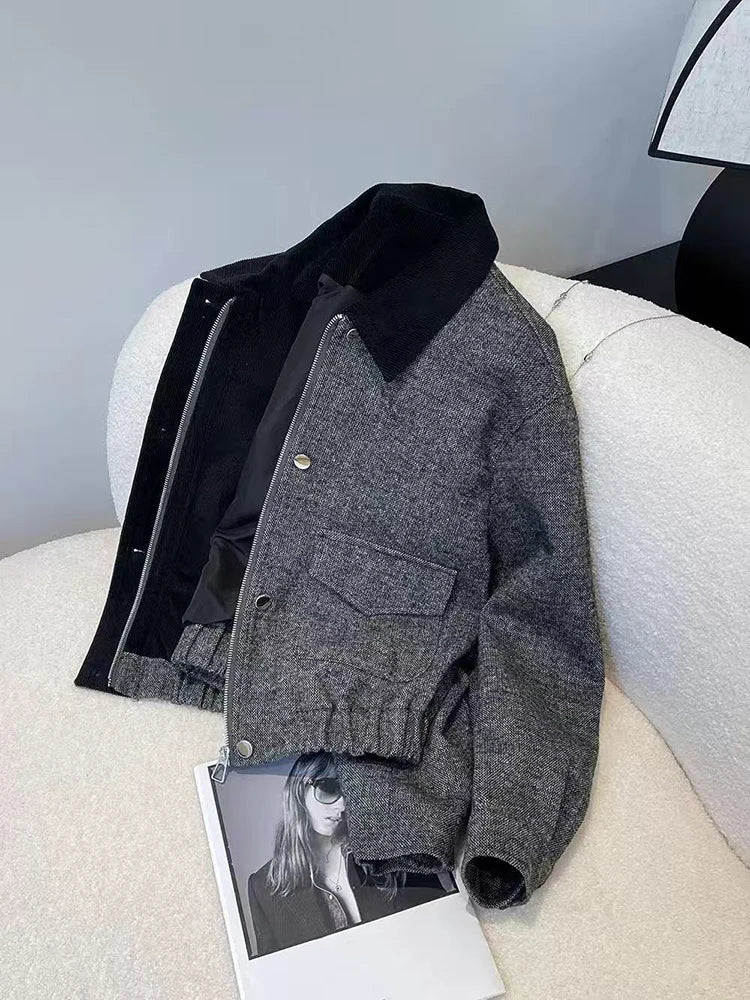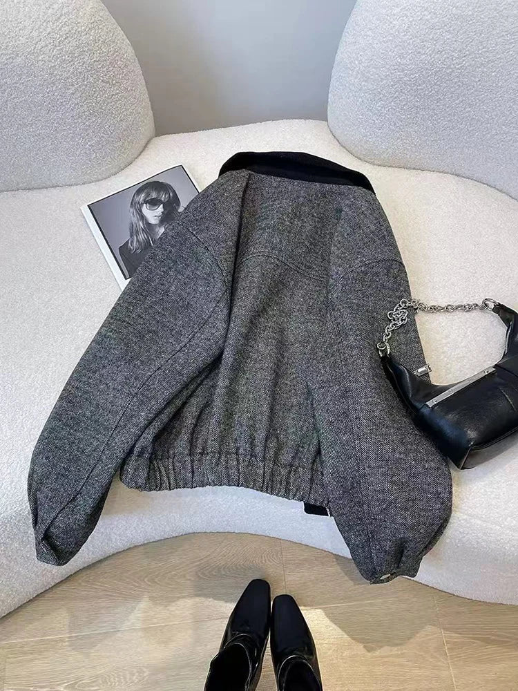 Bxoxo Fashion Patchwork Tweed Coats Women Y2K Korean Elegant Hepburn Style Lapel Crop Jacket Autumn Streetwear All Match Outwear New